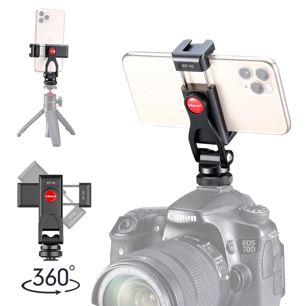 2 clod shoe allows attaching microphones and lights.Double spring lock, faster locking and unlocking within 1 second.Adjustable angle, custom dumping level, adjustable up to 170u00b0360u00b0 rotation, compatible vertical and horizontal shot.Z-axis 360u00b0 adjustable, shot with any angle.Full aluminum material, strong and STable.Universal cold shoe and 1/4 interface on the bottom.Anti-slip design.