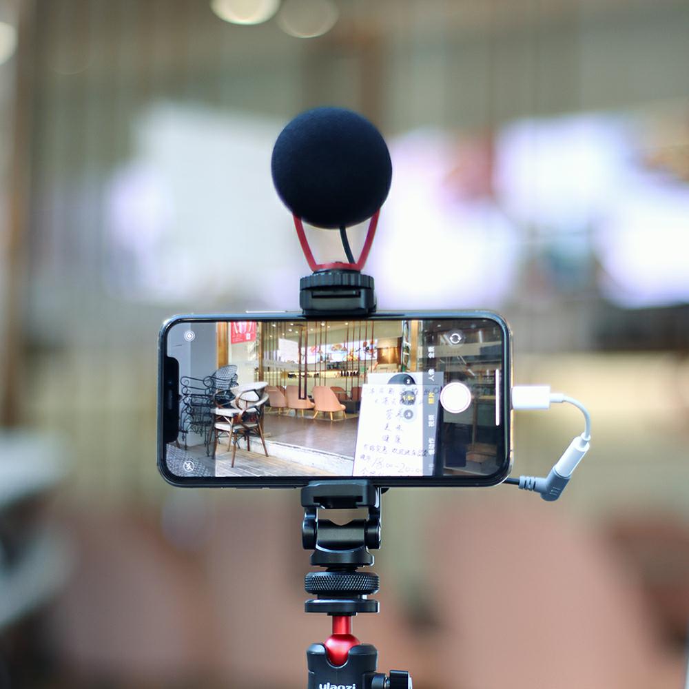 Metal Dual Cold Shoe Phone Holder Clip with Led Video Light Microphone Mount Hex Wrench 1/4 interface Cameras black