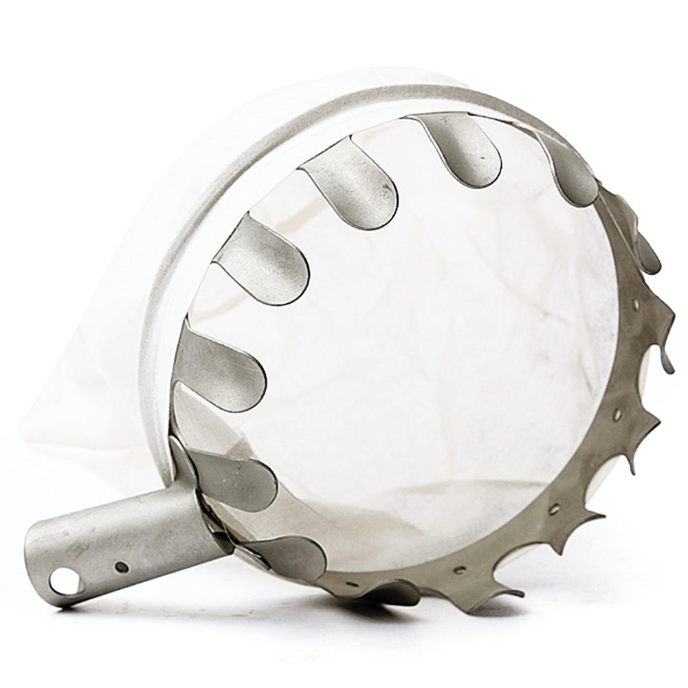 Use the teeth of the ring to cut fruit down and gather them in the bag.