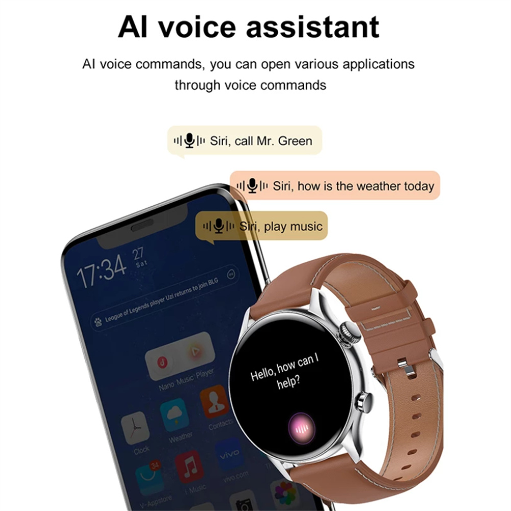 --Pay attention to your health: heart rate/blood oxygen/blood pressure monitor, sleep tracker, sedentary reminder, period tracker.--A good helper for exercise: steps, distance, calories burned, exercise mode.--Good helper in daily life: NFC access control, Bluetooth-compatible phone, synchronization notification, voice assistant, lock screen password, custom face, weather, music control, etc.--System requirements: compatible for Android 4.4 and above/iOS 9.0 and above.--Size: 44.8x44.8x11mm.