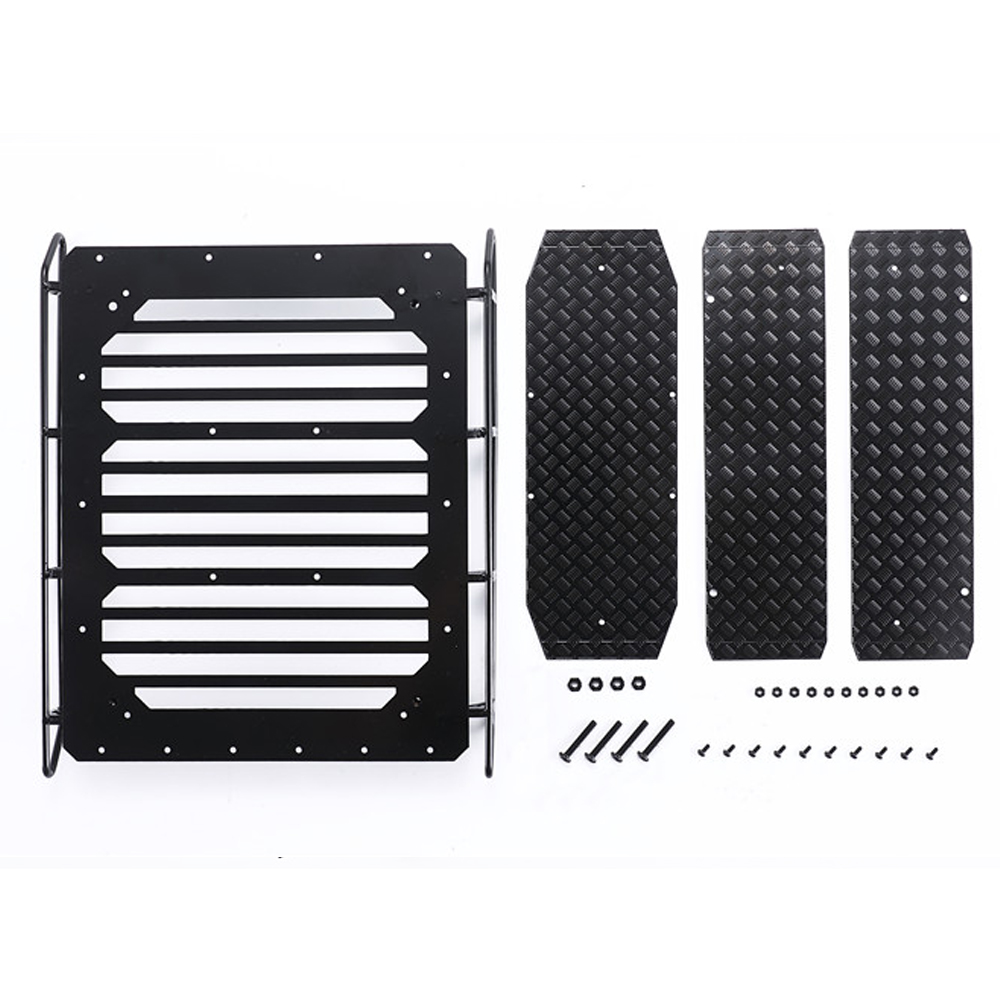 inspiration according to the real Mercedes Benz G63 luggage rack. The factory color is black and the material is stainless steel. Need to fix four M3 holes on the roof with M3 screws and nuts. Non-slip plates and spotlights need to be purchased separately. Spotlights are suitable for LEDs with 3mm diameter. Suitable for TRAXXAS TRX-4 TRX-6 6X6 G63 G500 car shell.