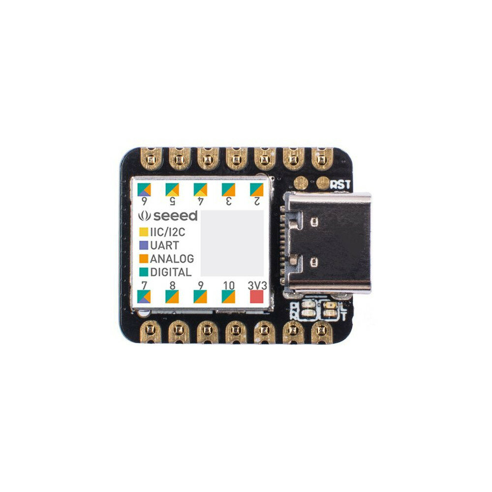 Outre le processeur puissant, Seeeduino XIAO est excellent dans de nombreuses autres fonctions. Il dispose de 14 GPIO PIN, qui peuvent etre utilises pour 11 PIN analogiques, 11 PIN numeriques, 1 interface I2C, 1 interface UART et 1 interface SPI. Certains PIN ont diverses fonctions, les broches A1/D1 e A10/D10 ont des fonctions PWM et la broche A0 / D0 a une fonction de DAC, ce qui signifie que vous pouvez obtenir de vrais signaux analogiques et non des signaux PWM lorsque vous le definissez comme une broche analogique, c'est pourquoi 14 GPIO PINs peuvent realiser plus de PINs d'E / S et d'interfaces. De plus, Seeeduino XIAO prend en charge l'interface USB Type-C qui peut fournir de l'energie et telecharger le code. Il y a des pads d'alimentation e l'arriere du XIAO qui prennent en charge la batterie et le rendent coneu pour que les appareils portables deviennent realistes. e l'exception de la LED d'alimentation, nous ajoutons une LED utilisateur e bord pour votre meilleure experience de codage. Generalement un developpeur. Une carte aussi petite que cette taille utilisera l'oscillateur e cristal interne de la puce pour la fixation de l'heure, afin de rendre l'horloge plus precise, Seeeduino XIAO dispose de 32,768 KHz supplementaires pour rendre l'horloge plus stable.