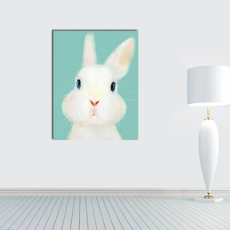 Miico Hand Painted Oil Paintings Cartoon Rabbit Paintings Wall Art For Home Decoration