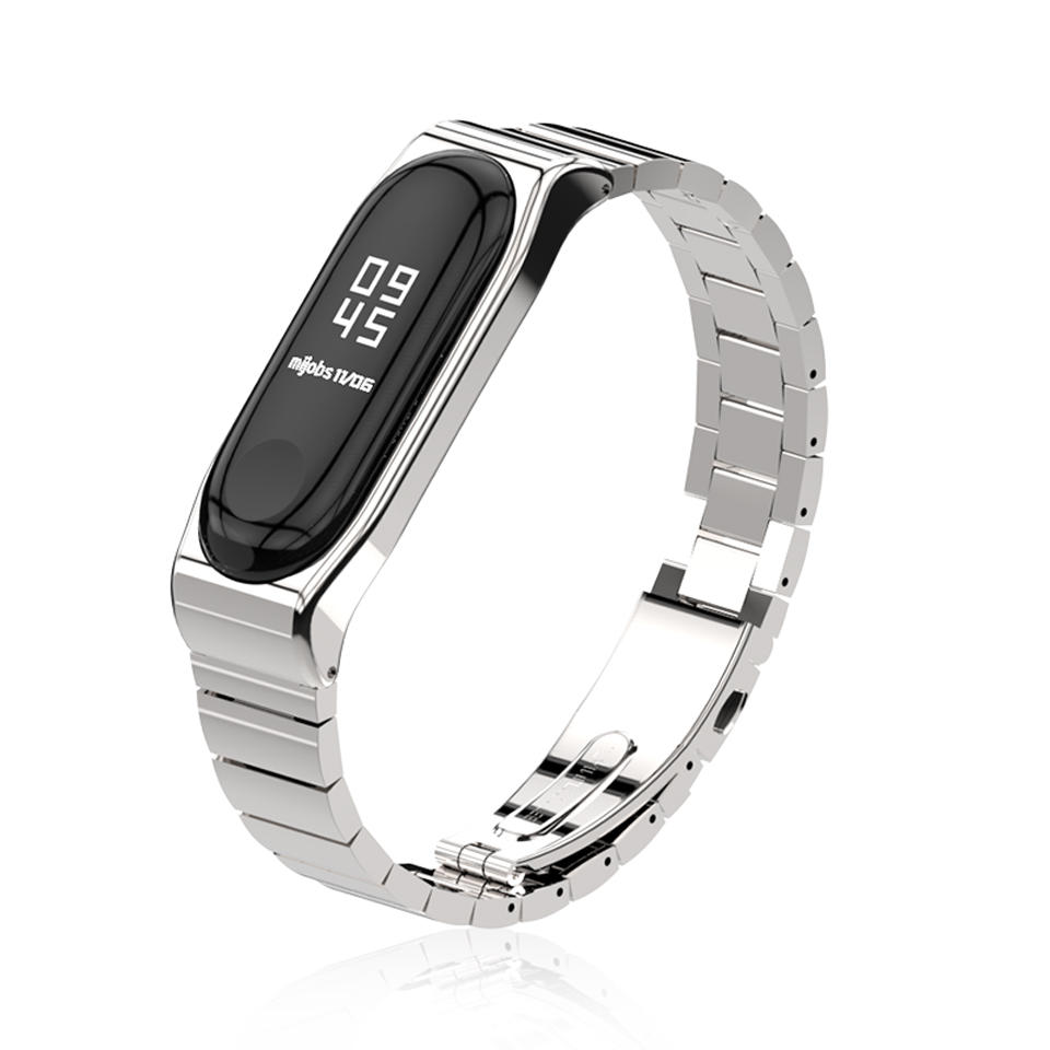 Mijobs Anti-lost Metal Pro Strap Simple Design Watch Band Full Steel Watch Strap for Xiaomi Mi Band3 Non-original – Silver
