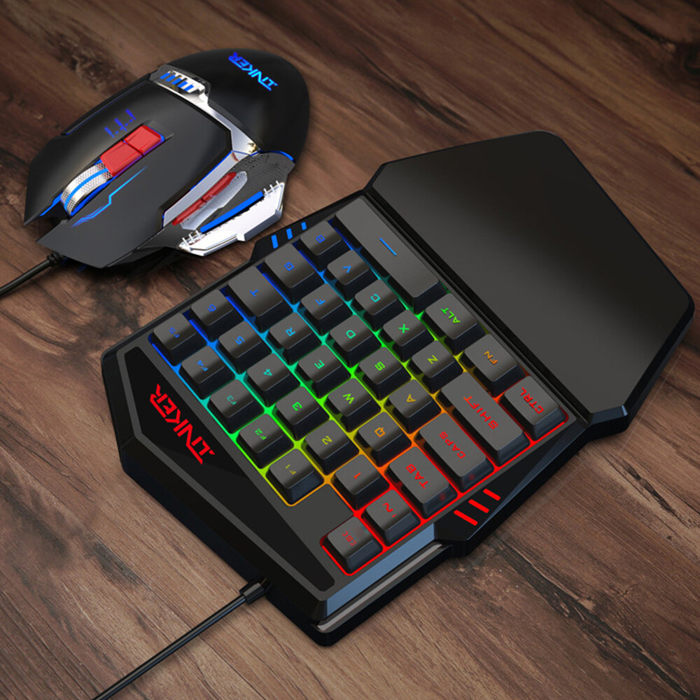 . Fonctionnalites: Clavier de jeu professionnel: Puce de jeu integree, avec une vitesse de reponse 3 ms plus rapide, plus fluide pour jouer e des jeux, parfaite pour les amateurs de jeux pour profiter pleinement du plaisir des jeux. Toutes les 35 touches anti-ghosting, adaptees e presque tous les jeux PC. Design ergonomique: Le clavier utilise un design portable, sa petite taille le rend non seulement facile e transporter, mais vous permet egalement d'economiser de l'espace. La grande resolution du poignet et la conception ergonomique vous offrent une experience de jeu relaxante. Retroeclaire RVB: Le retroeclairege RVB prend en charge le mode souffle et le mode statique, il y a 7 couleurs e choisir, l'effet d'eclairege cool vous apportera plus de plaisir pour le jeu. Facile e utiliser: Pilote gratuit, Plug & Play, entierement compatible avec: Win10 / 8/7 / Vista / ME / Mac / Linux / IBM Clavier de jeu e une main Sans pilote, plug and play Conception portable e 35 touches, cle complete sans conflit, keycap e deux couleurs Augmentez et elargissez le repose-poignets integre pour une experience de jeu confortable. Materiau: plastique ABS Methode de connexion: ceble USB Longueur de ceble: 1,5 m Numero de cle: 35 Type de clavier: clavier e membrane Poids du produit: 360g Caracteristiques lumineuses: lueur arc-en-ciel monochrome Commutateur de retroeclairege:FN Packege Comprendred: 1x clavier (souris et convertisseur non inclus)