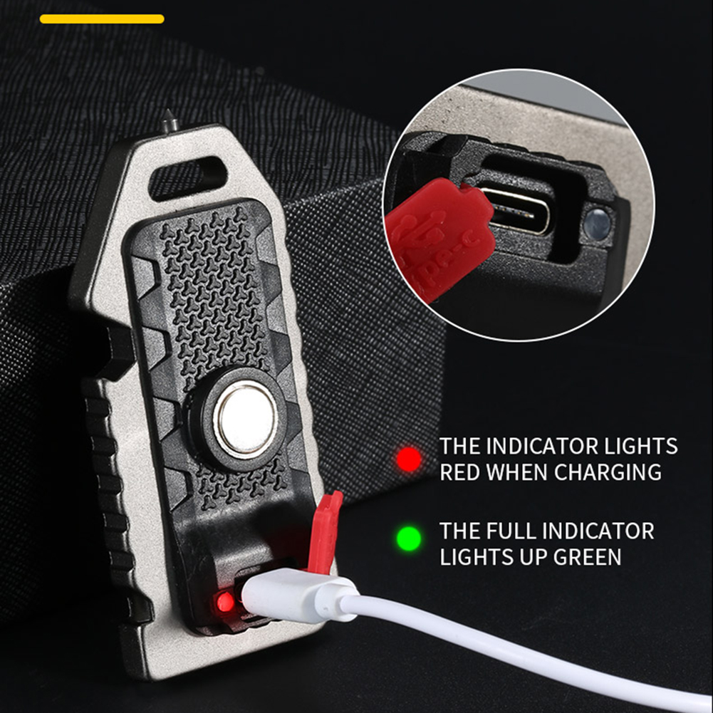 Mini Portable: Small and slim body, easy to carry Magnetic adsorption on the back, can be adsorbed on the surface of ferrous metal at will Emergency window breaking hammer function. When you need to break the window in case of danger, you can break the window to escape, and it can also be used as an emergency survival whistle - be prepared. High-brightness COB light source, with five light modes. Type-c charging, built-in 500mAh battery, effective battery life.