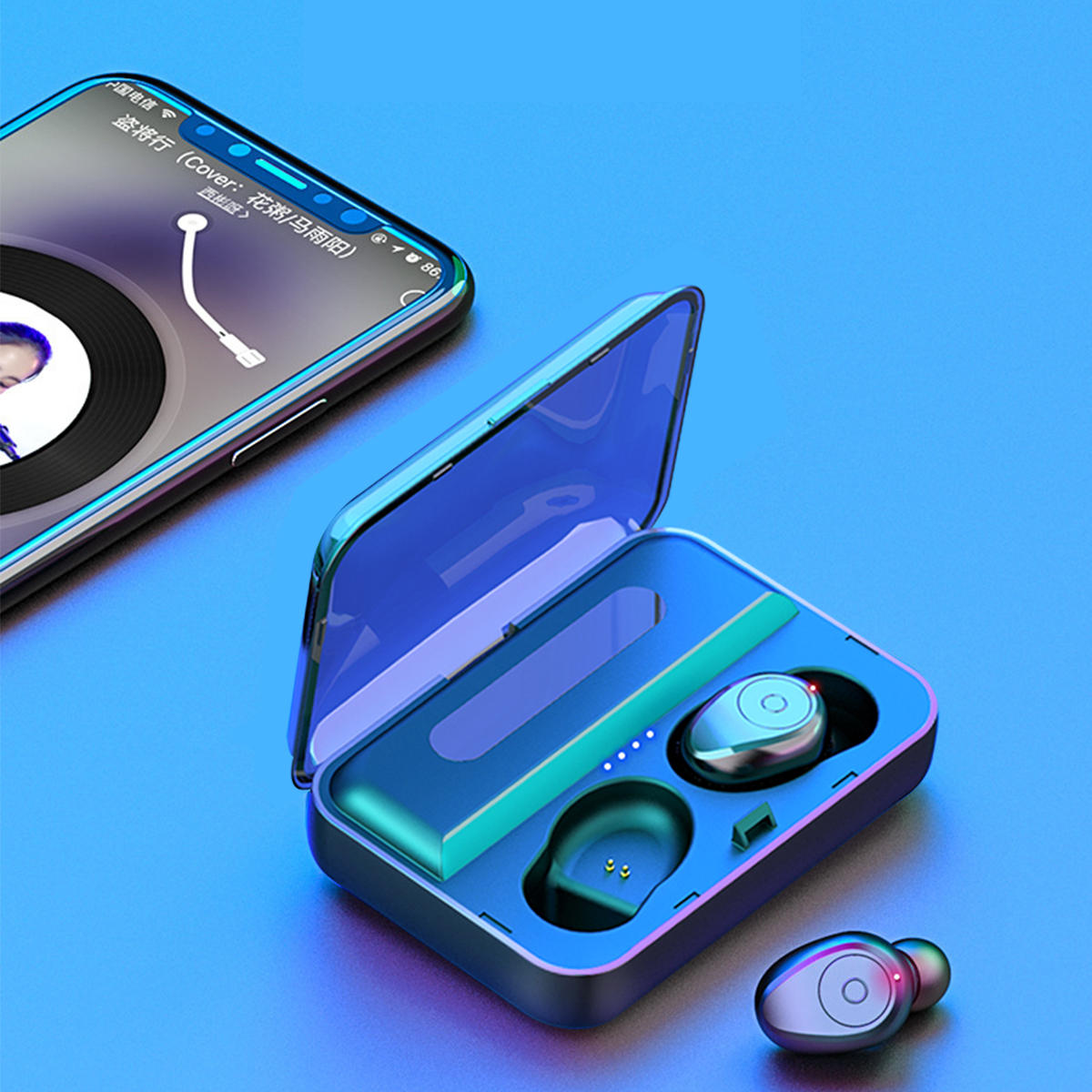 Mini double bluetooth 5.0 TWS ecouteurs stereo sans fil e reduction de bruit casque d’affichage pour – Noir