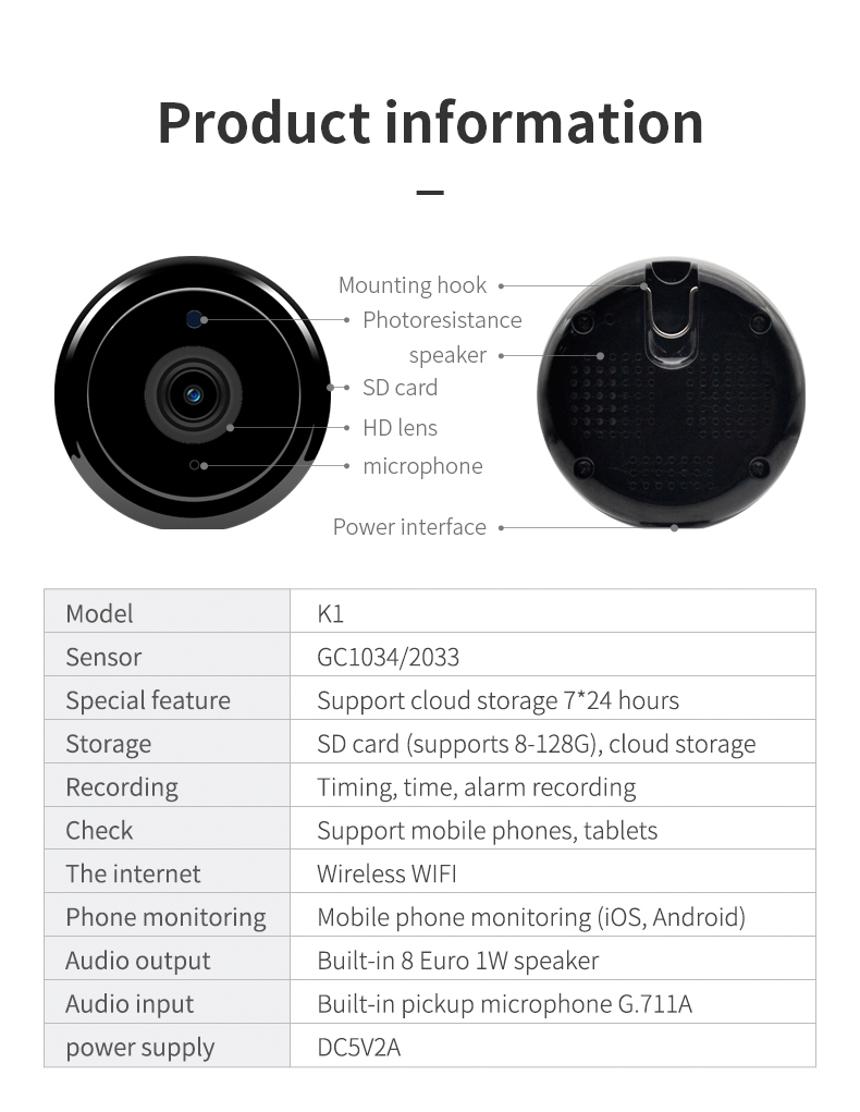 Keep an eye on your home or office as a nanny camera. Perfect as surveillance camera in: Office, Home and Car etc.Compact size with delicate details, it comes with all useful features you need for a WiFi Mini camera indoor or outdoor.Equipped with intelligent motion detection. You can get it plugged to USB charger to have it stay on continuously.