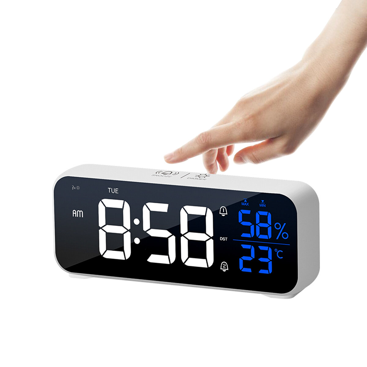 Miroir Reveil LED Musique Mur Horloge Numerique Temps Temperature Humidite Affichage USB Rechargeable Horloge De Table – Blanc