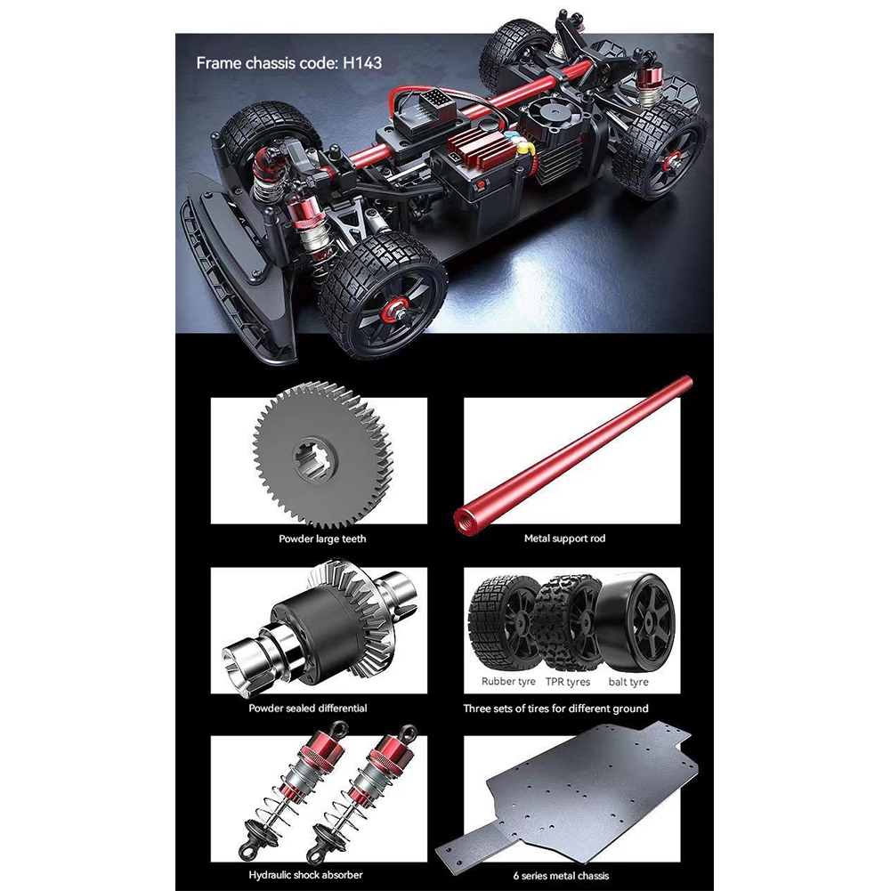 Watch The Following Video to Learn More About This Item: 'vimeo cboxElement' title='Mjx Hyper 14301 1:14 Brushless RC Car 2.4g Remote Control Pickup 4wd High-speed Off-road Vehicle' .com/embed/-bm0S31qmfs'> All-metal hydraulic shock absorber with oil filled; Standard 2S battery 45km/h ,with 3S battery speed 60kmh+, 45A independent brushless ESC + 2845 four-pole brushless motor; Metal anti-collision chassis All-metal transmission system (steel gear differential); Standard independent receiver, easy to modify