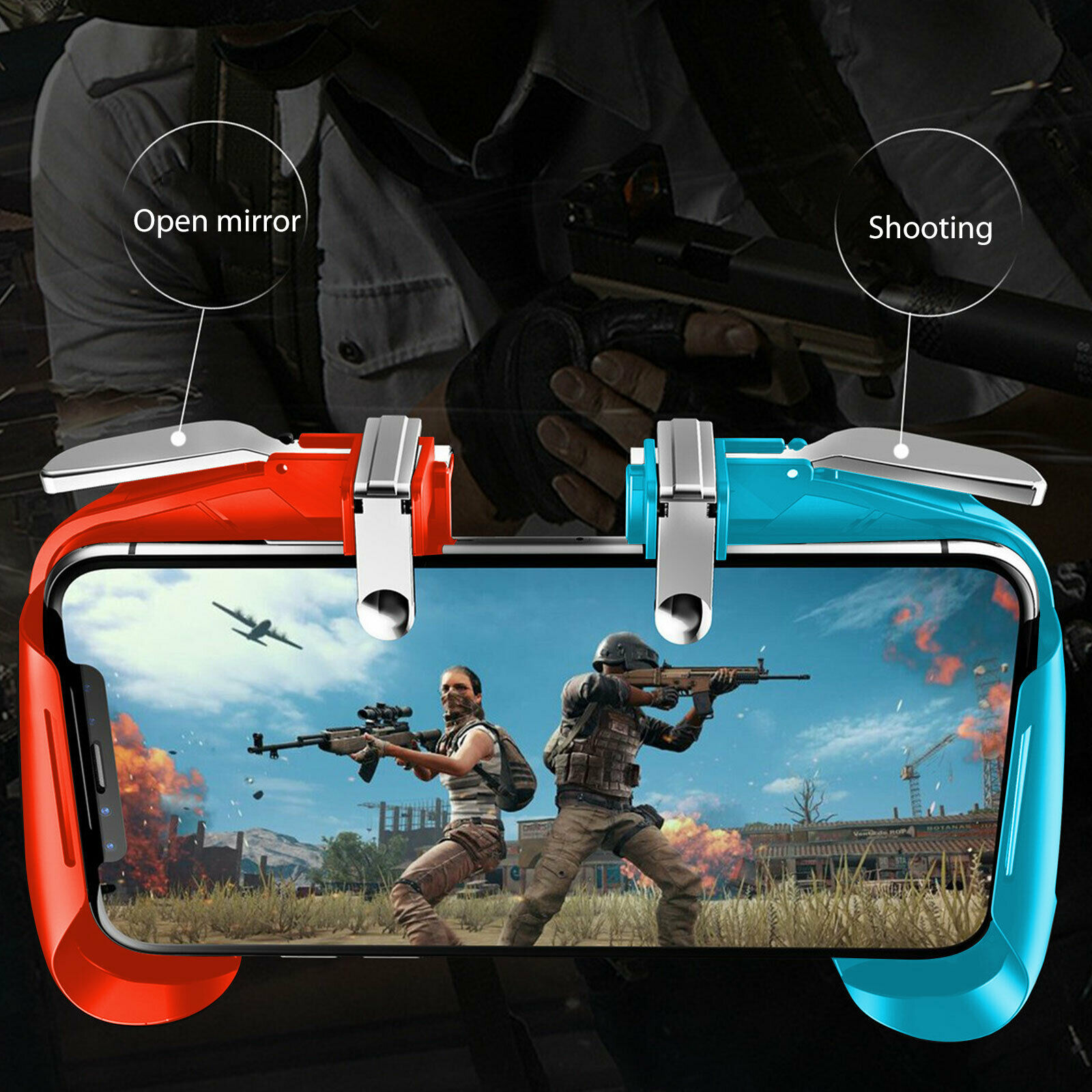 Ergonomic design, very strong and practical.Lightweight and portable, long using time.Stretchable and adjustable, Mobile phone Maximum height support 82 mm and the width is 173mm.Touch-sensitive shooting left hand movement, right hand aim.Fingers can gently touch contact sensitivity.Turnover design: not block the line of sight and mobile phone screen.Easy to install and remove.