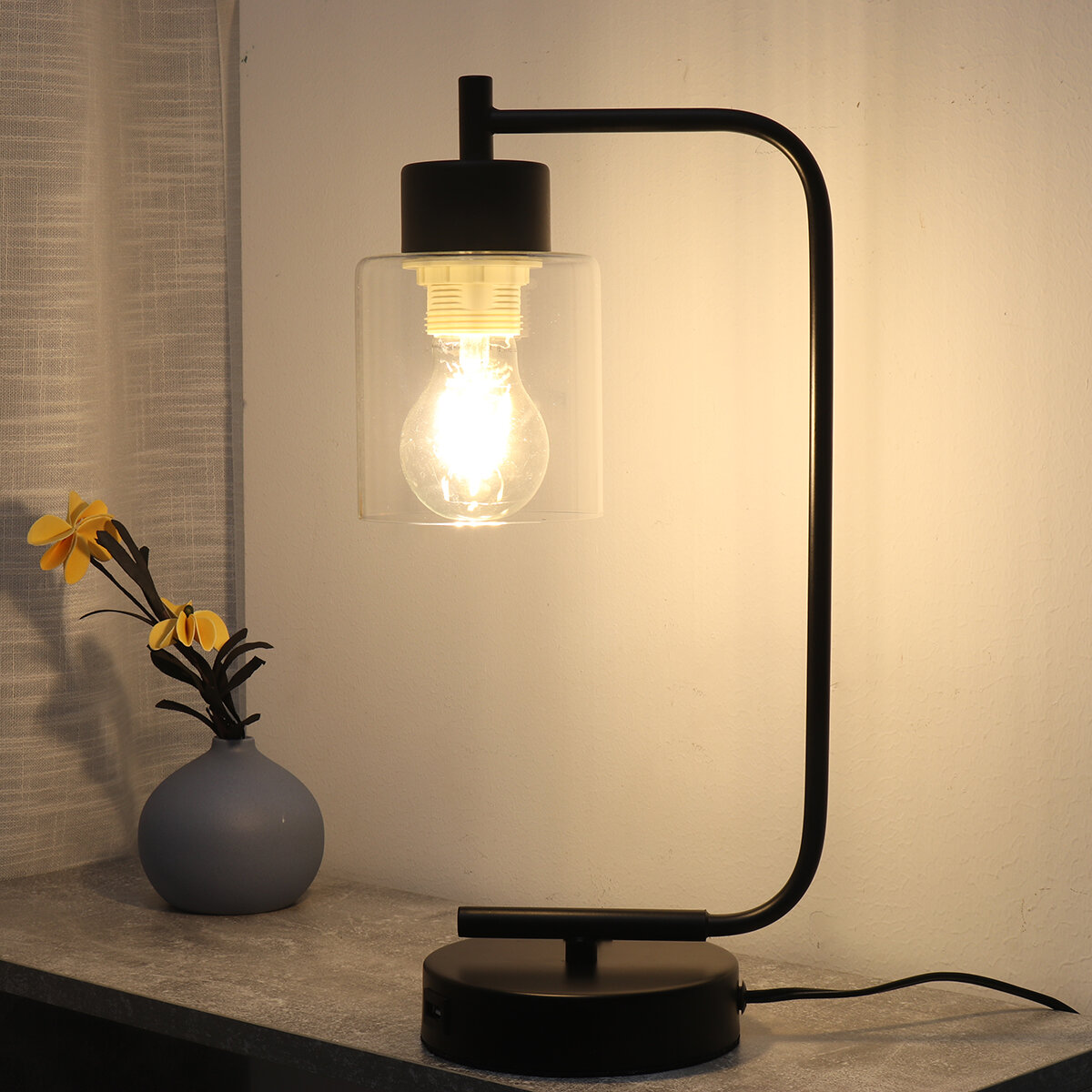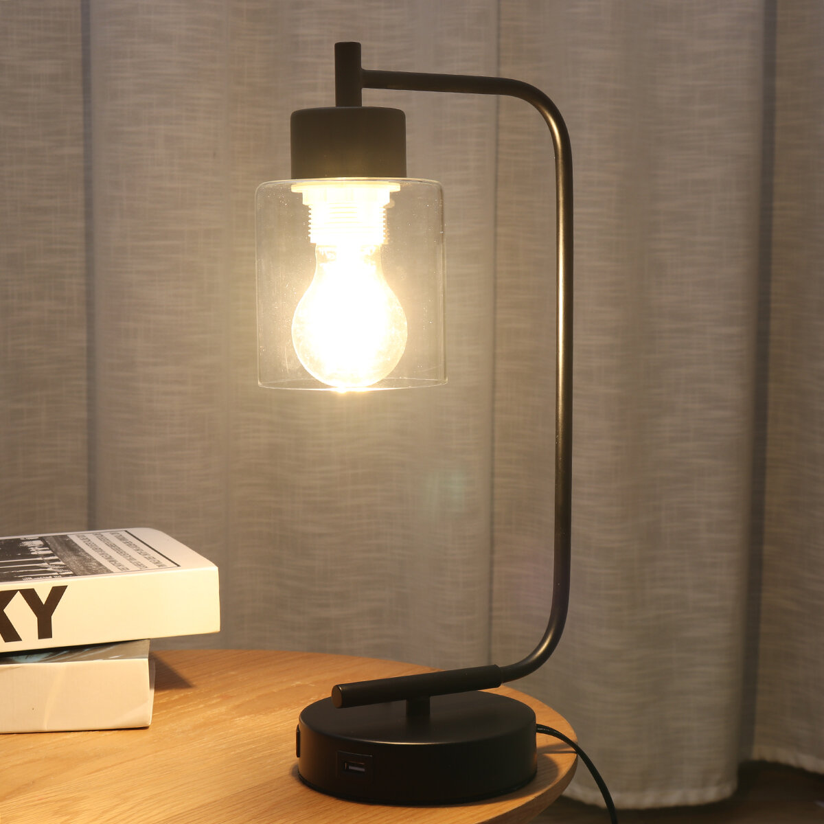 Modern Table Lamp Industrial Bedside Desk Light Bulb Lampshade Bedroom Home 220V