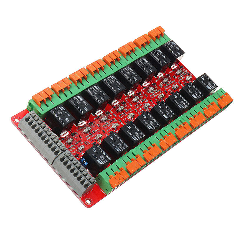 Module de contrele de relais 16 canaux isole bidirectionnel, selon les besoins de l'utilisateur, il peut choisir un niveau electrique haut ou bas pour contreler la prise du relais. Le module adopte un relais de puissance authentique et de haute qualite, des optocoupleurs ultra-compacts les plus performants de l'industrie, un transistor dielectrique haute puissance haute puissance, des feux de signalisation ROUGE, une plaque PCB de qualite militaire double face, une disposition generale apres consideration globale, avec ses performances stables il peut etre largement utilise dans diverses occasions de contrele de puissance.