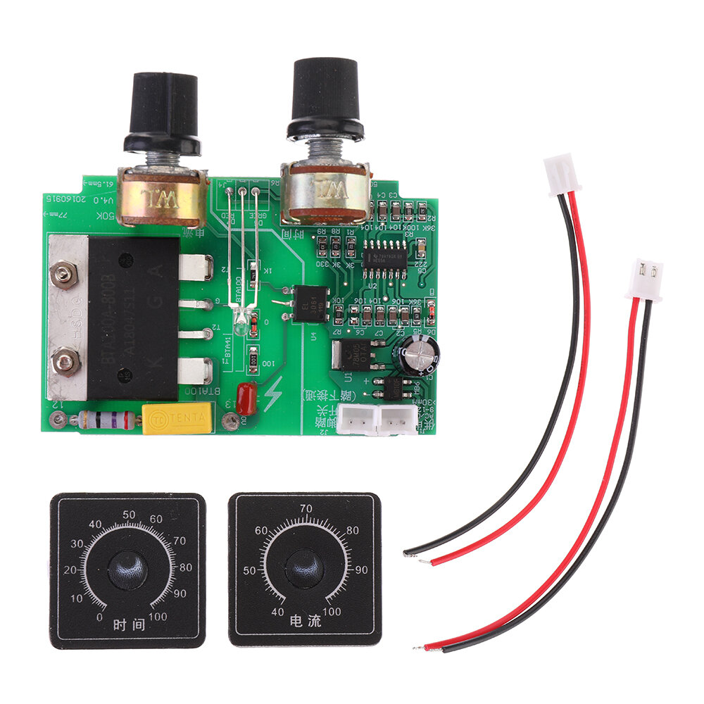 2. Le temps de soudage et le courant du point de soudage au point de soudage peuvent etre ajustes dans la plage de 0,02 e 0,1 s, le courant est de 40% e 100%, le bouton avant gauche regle le temps et le bouton avant droit ajuste le courant. (Pour des raisons de securite, ajustez le bouton de courant sur la poignee en plastique personnalisee du potentiometre, le reservoir de couple est legerement plus petit.)