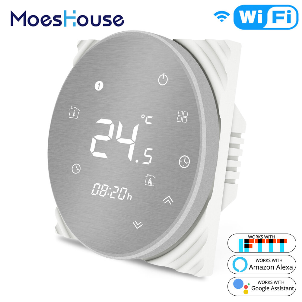 Main Feature:1. Functional Water/Electric Floor Heating Water/Gas Boiler: Control with Wi-Fi included for intelligent Water/Electric Floor Heating Water/Gas Boiler heating, provide maximum and comprehensive convenience to your smart life.(Note: current load is 5A)2. Metal Brushed Panel:Amazing Silver Frame and color digital open your modern life, and the square display also helps to protect your eyes. MOES Thermostat is focused on making simple, human, delightful feelings for your home, and this kind of color is suitable for various decoration styles.3. Smart Home Compatible: Working with Alexa Google Home, MOES Thermostat offers the most well-utilized temperature of Water/Electric Floor Heating Water/Gas Boiler for yourself wherever you are by using voice control.4. Smart Phone Remote Control: Remotely control your Water/Electric Floor Heating Water/Gas Boiler temperature to attain advanced comfort via your Smart Life App, easy to operate on your smart phones anywhere you are.5. 5+2 Programmable: Supports full auto programs or manual set up 5+2 days weekly schedule of 6 stages daily, providing you with the maximum convenience and economy. Data memory when power is off.