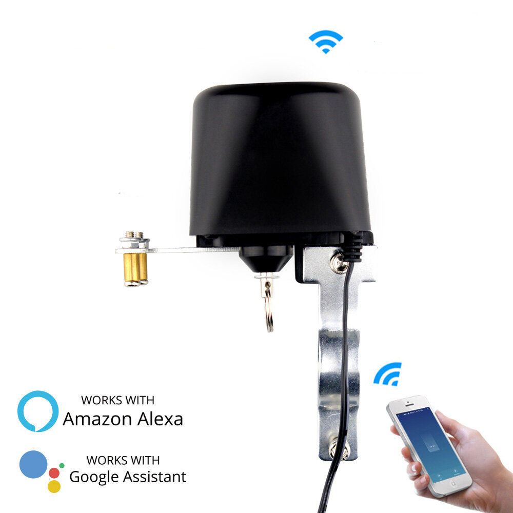 Product Features: 1. Voice Control: The smart valve is compatible With Alexa, Google Home. When you are busy at cooking, and It is very    convenient to control water valve on/off via your voice.2. Remote Control: Even if you are not at home, don't worry whether you had close the gas valve or not,just pick up your phone and close it, and just enjoy your time comfortable!3. Timing: Set a timer schedule to the valve automoatically. Such as make a schedule for garden sprinkler,it can watering plants automatically, and always is a bright shade of green.4. Group Control & Sharing: You can set several water valves as a group and control them in app, just take an action to control them. And also you can share it to your family via "smart life"app, so they can control it at the same time.