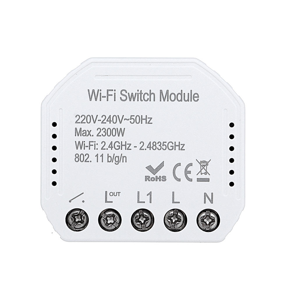 . Caracteristique principale: 1. remplacez facilement votre commutateur traditionnel pour le rendre intelligent Peut rendre votre interrupteur e 2 voies intelligent egalement, installez simplement 1 interrupteur intelligent bricolage, convient pour le boetier de commutation EU / UK, veuillez confirmer la taille avant de commander. 2. Contrelez sans fil Contrelez sans fil vos lumieres ou appareils par la voix ou l'automatisation e l'aide de votre telephone intelligent et Alexa ou Google Assistants. 3. Tension ca 220-250vac / 10 amperes de charge maximale Le module de commutation de bricolage peut contreler une large gamme de lumieres et d'appareils 4. Le contrele Wi-Fi via votre telephone mobile 2.4G Networks fournit la connexion necessaire au module de commutation DIY sans avoir besoin d'un HUB separe. 5. Utilise l'application Android / ios "smart life / Tuya" populaire. L'application polyvalente permet un contrele total de vos lumieres ou appareils compatibles. Plusieurs options de programme vous permettent de planifier l'heure exacte pour allumer / eteindre automatiquement les lumieres / ventilateurs / etc. 6. Donnez e vos appareils le relooking intelligent marche / arret, il suffit de cebler ce module e faire soi-meme entre votre appareil et la source d'alimentation pour convertir la plupart des produits compatibles en un produit intelligent. Specificaton principale: Tension d'entree: 220V ~ 240V / 50Hz Ceblage: fil sous tension et fil neutre Max. Puissance de charge: 2300W Norme WiFi: 2,4 GHz 802.11 b / g / n Nom de l'application: Tuya Smart / Smart Life Vie professionnelle: 100 000 fois pour l'operation Taille: (0,7 * 1,86 * 2,03) pouces Certification: FCC, CE, RoHS Emballage inclus: 1 x MoesHouse interrupteur d'eclairage intelligent WIFI 1 x manuel en anglais