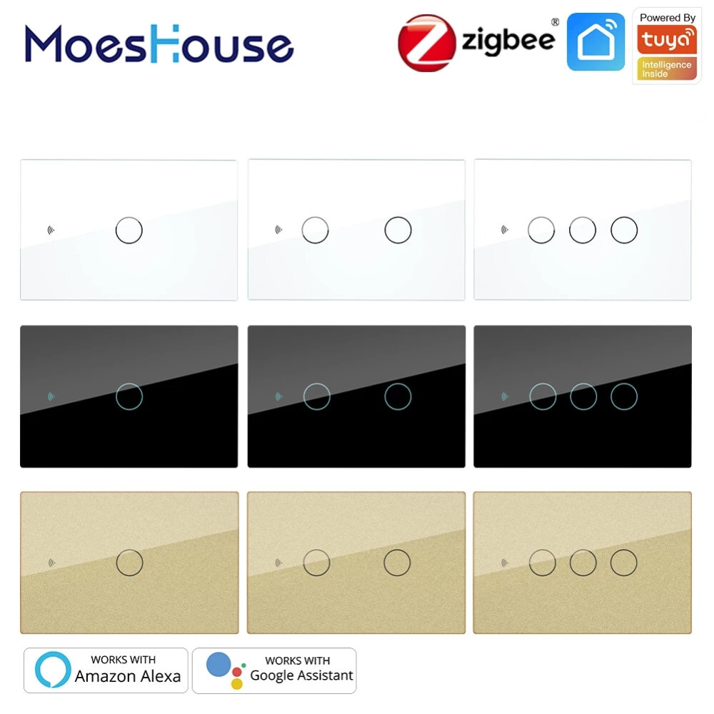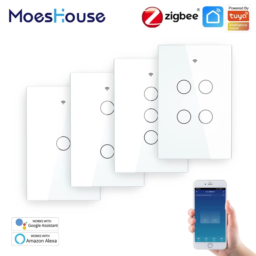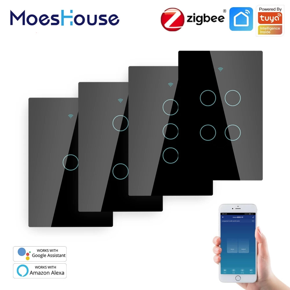 MoesHouse ZigBee3.0 AC100-250V 50 / 60Hz US Interrupteur d’eclairage intelligent tactile mural Prise en charge du fil neutre / sans fil neutre Aucun condensateur Smart Life / Tuya fonctionne avec Alexa Google Hub requis – 1 gang noir