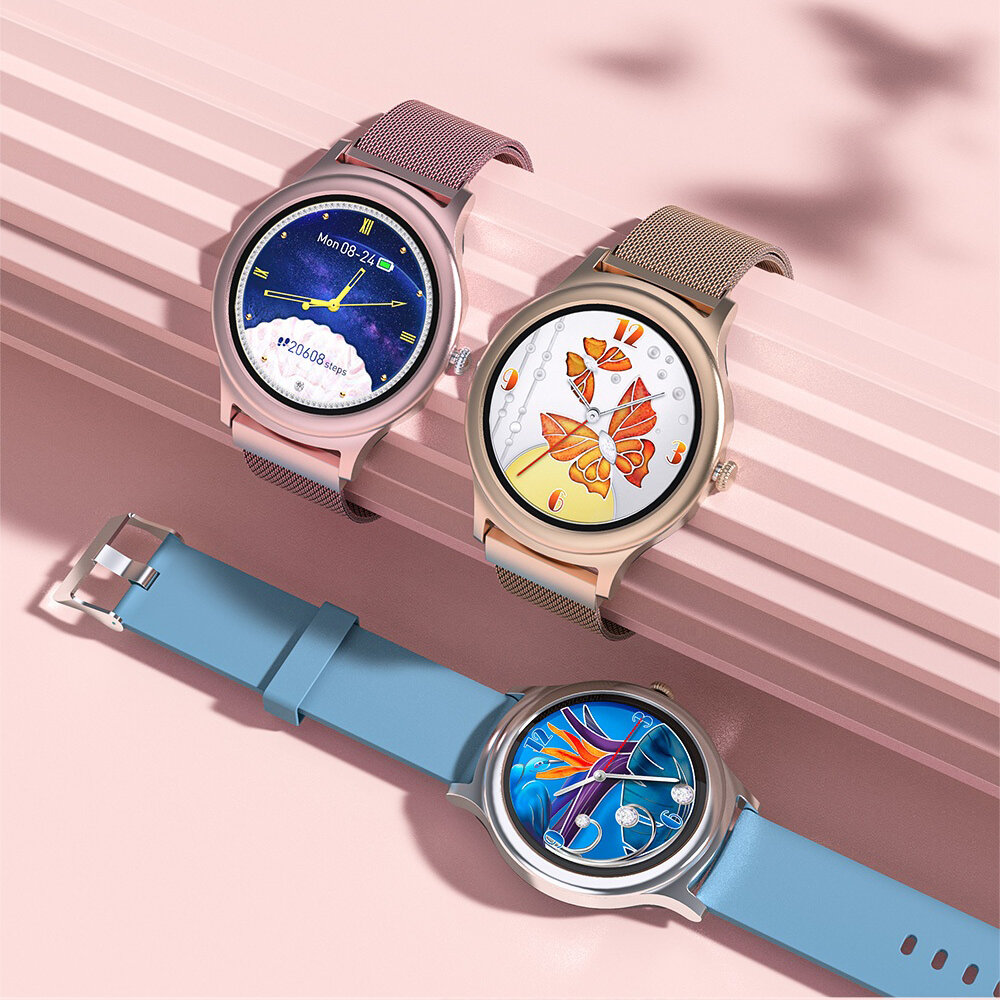 Moniteur de pression arterielle HR e ecran tactile complet BlitzWolfe BW-AH1 24 Modes Sport Fond d’ecran personnalise Meteo Push Femme Montre intelligente elegante – rose