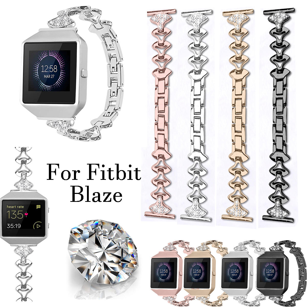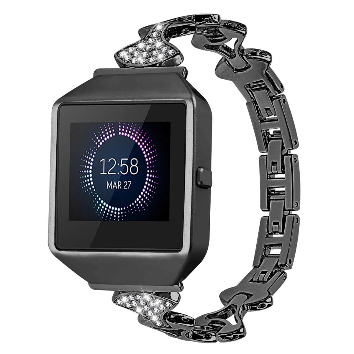 Montre de chaene en cristal d’acier inoxydable de remplacement e la mode de Bakeey Bande pour la montre intelligente Fitbit – Noir