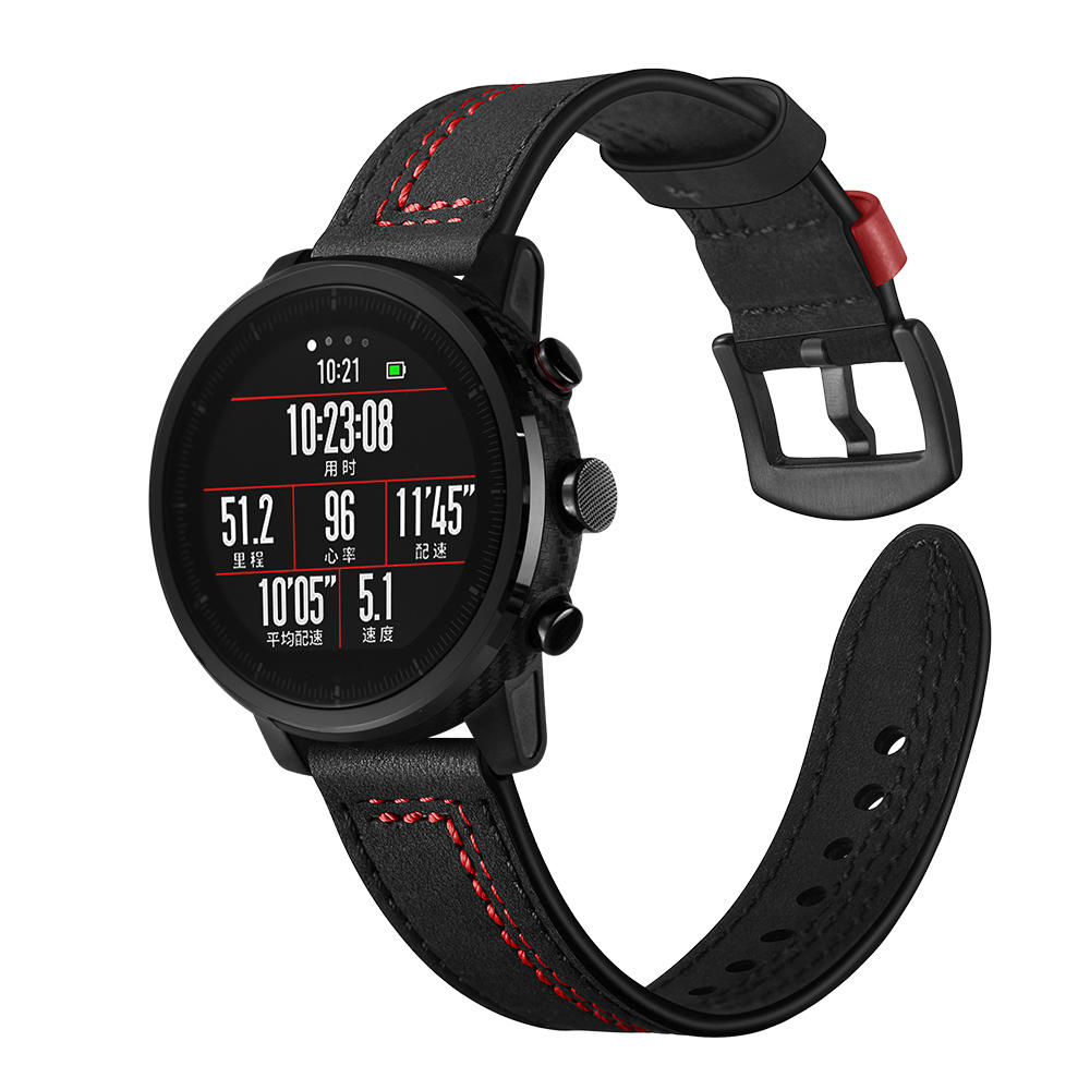 Montre en cuir veritable de style de ligne 22mm Bande Bracelet pour Huami Amazfit 2 – Noir
