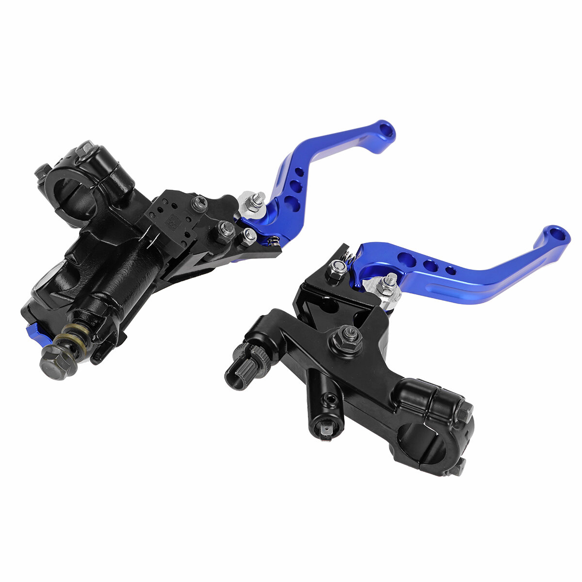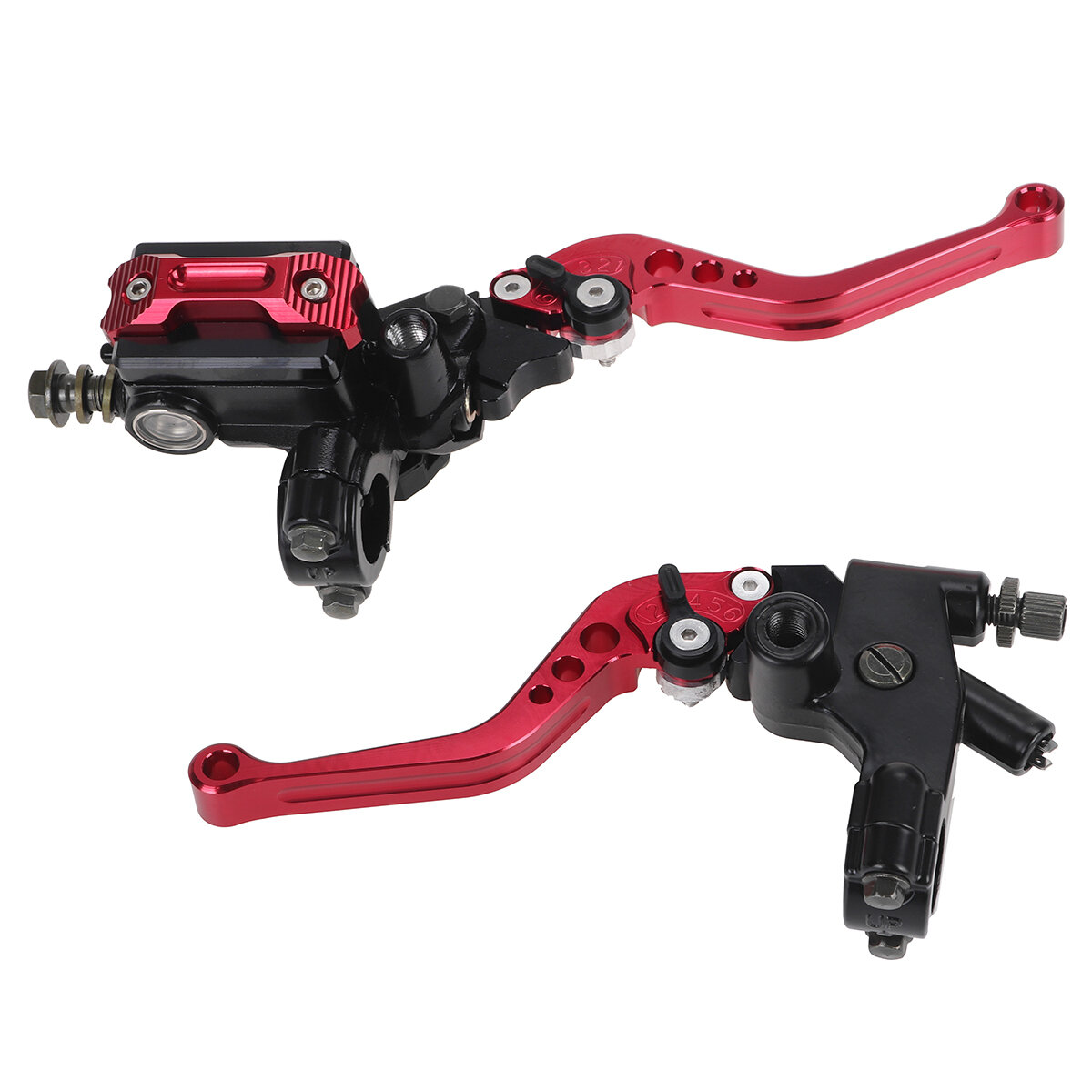 : 1. Levers are Adjustable. 2. Two Fingers Short Levers. 3. 6 Position lever adjustment stainless steel fasteners. 4. Hydraulic and Clutch Brake 5. Precision machined pivot bore to ensure a perfect fit. 6. Stainless steel hardware. 7. Adjustable reach system provides the perfect lever position for all riders. 8. Fitment: Universal fit on most Sport bike , Street bike , Scooter , Dirt Bike with 7,8 22mm Standard Handle bar Note: Only fits models with cable clutch Specification: Type Adjustable Brake and Clutch Master Cylinder Levers Color Black,Blue,Red,Silver,Gold Optional Material Aluminum Alloy Bore Size 0.55 inch,12.7mm Banjo Bolt Size M10x1.25mm Piston 14mm Note: 1. We provide clear pictures, measurements where possible. Please check as much as possible to make sure the item is the one that you need. 2. All dimensions are measured by hand, Please allow 0.5-1 inch difference due to manual measurement. 1inch,2.54cm . 3. There Are No Instructions Included In This Kit.Professional Installation Is Highly Recommended. 4. The color of the actual items may slightly different from the listing images due to different computer screen, thanks for your understanding. Package Included: 1 X Left Side Adjustable Brake and Clutch Master Cylinder Levers 1 X Right Side Adjustable Brake and Clutch Master Cylinder Levers