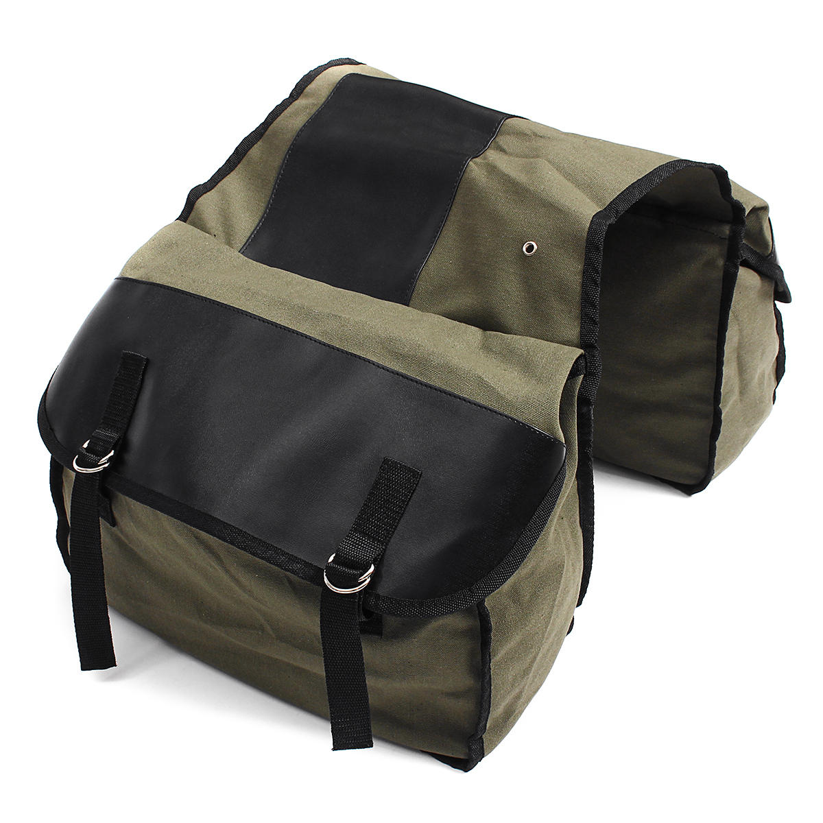 Motorcycle Saddlebags Canvas Side Back Pack Bike Multi-Purpose Luggage Bag Army Green