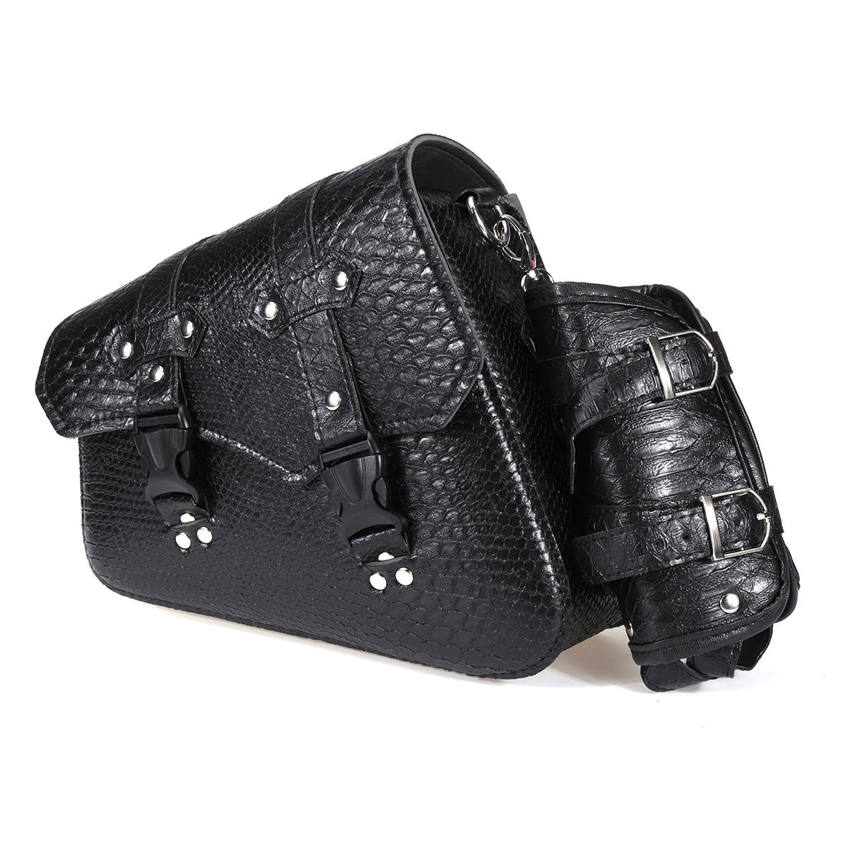 Motorcycle Saddlebags Rider Panniers Luggage with Kettle Bag Black Left/Right PU Leather Universal – Right