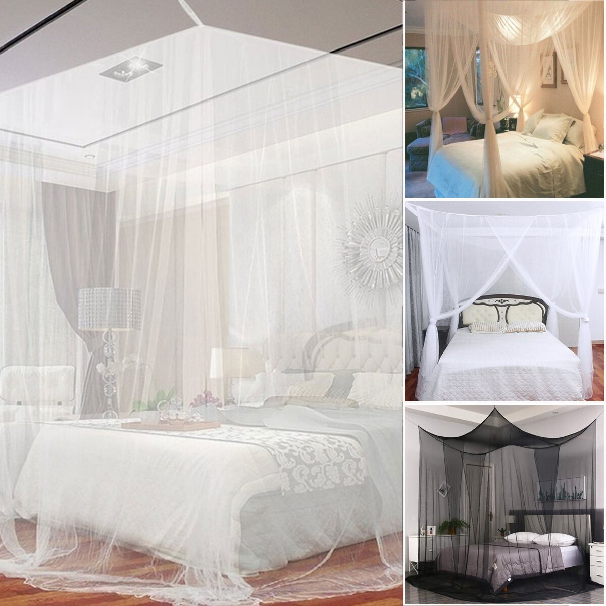 Multi-color Four Corner Mosquito Net Polyester Mesh Fabric Easy to Assemble Court Mosquito Net – Black