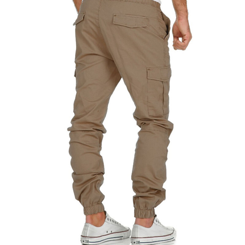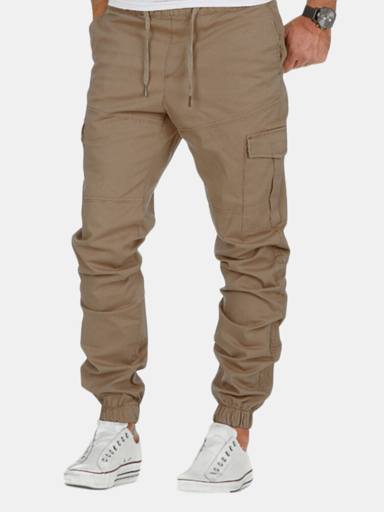 Multi-pocket Elastic Waist Solid Color Pants – L Khaki