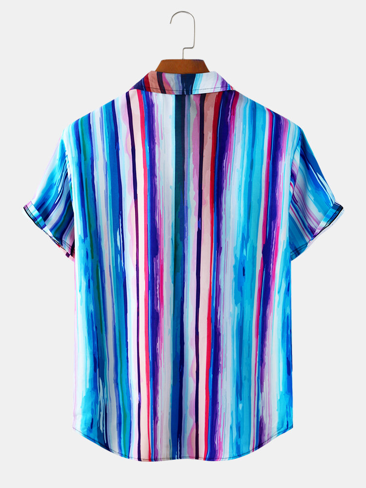 Fit Type:Regular FitMaterial:PolyesterNeckline:LapelPattern Type:StripedScene:Leisure,Home,Beach,CasualSeason:SummerSize:XXL,L,S,XL,MSleeve:Short SleeveStyle:Casual,Hawaii Style