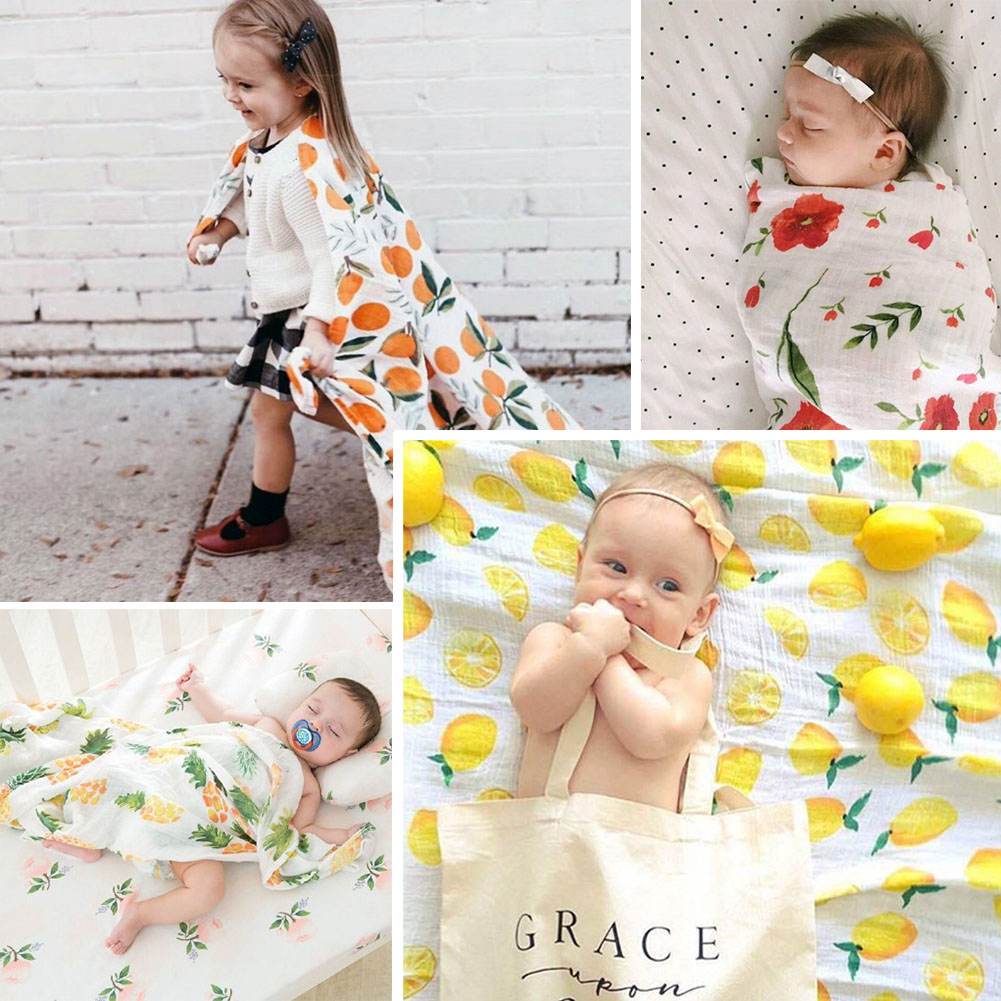 Made of soft muslin, breathable and skin friendly. Double-layer with fine moisture absorption, enough for infant/baby kids. Fashion cartoon pattern printing, comfortable and attractive. Perfect for swaddle wrap, daily blanket, baby photography prop etc.