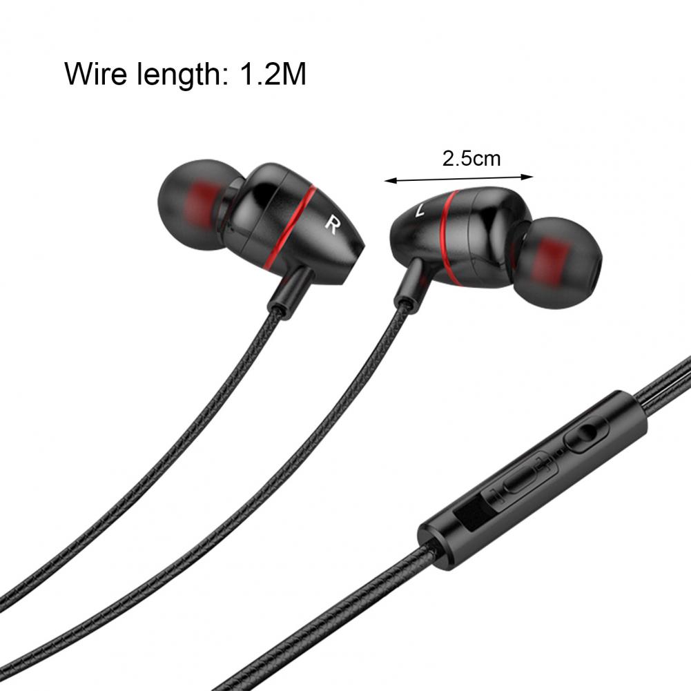 --Due to the ergonomic in-ear design, it is comfortable to wear for a long time.--High-sensitivity speakers make the bass full and surging, and the sound is clear.--Using graphite diaphragm, the sound quality is full without distortion.--The wire is made of pure copper core, four-layer protection, tensile resistance, anti-winding, anti-interference, and highly restored non-destructive sound quality.--The product is 1.2cm long, 2.5cm wide and 1.5cm high. The headphone cord is 1.2m long.