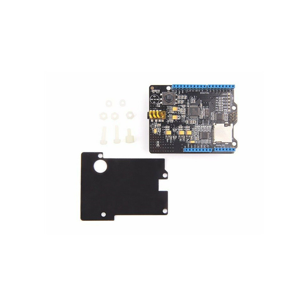 Il est temps de construire votre instrument / lecteur de musique MIDI en temps reel! Le Music Shield est un encodeur / decodeur audio compatible avec Arduino, Seeeduino, Seeeduino Mega et Arduino Mega. Il est base sur la puce VS1053B, ce qui lui a permis de lire les fichiers audio de la carte SD et de faire un enregistrement de courte duree. Vous pouvez egalement l'utiliser pour jouer des notes MIDI en modifiant legerement ses installations materielles. En raison du mode de communication SPI, il conserve un nombre minimum de ports IO qui facilite les propres developpements de cet appareil par les utilisateurs. De plus, le nouveau bouton multifonction offre une plus grande commodite de contrele pour les utilisateurs.