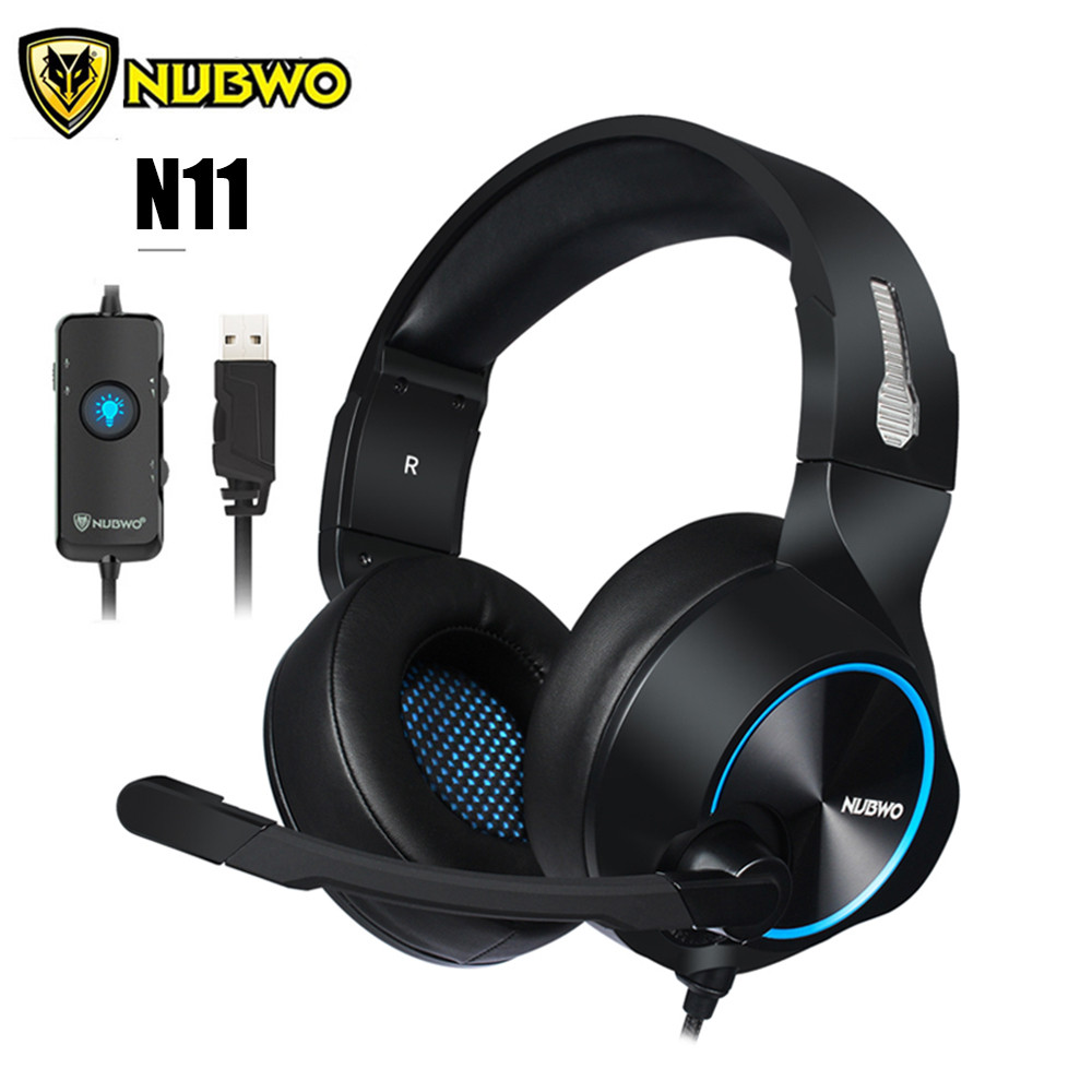 N11U PC Gamer Gaming Headset Casque 7.1 Channel Sound Wired USB Earphone Headphones with Mic Volume Control LED for Computer Black + blue