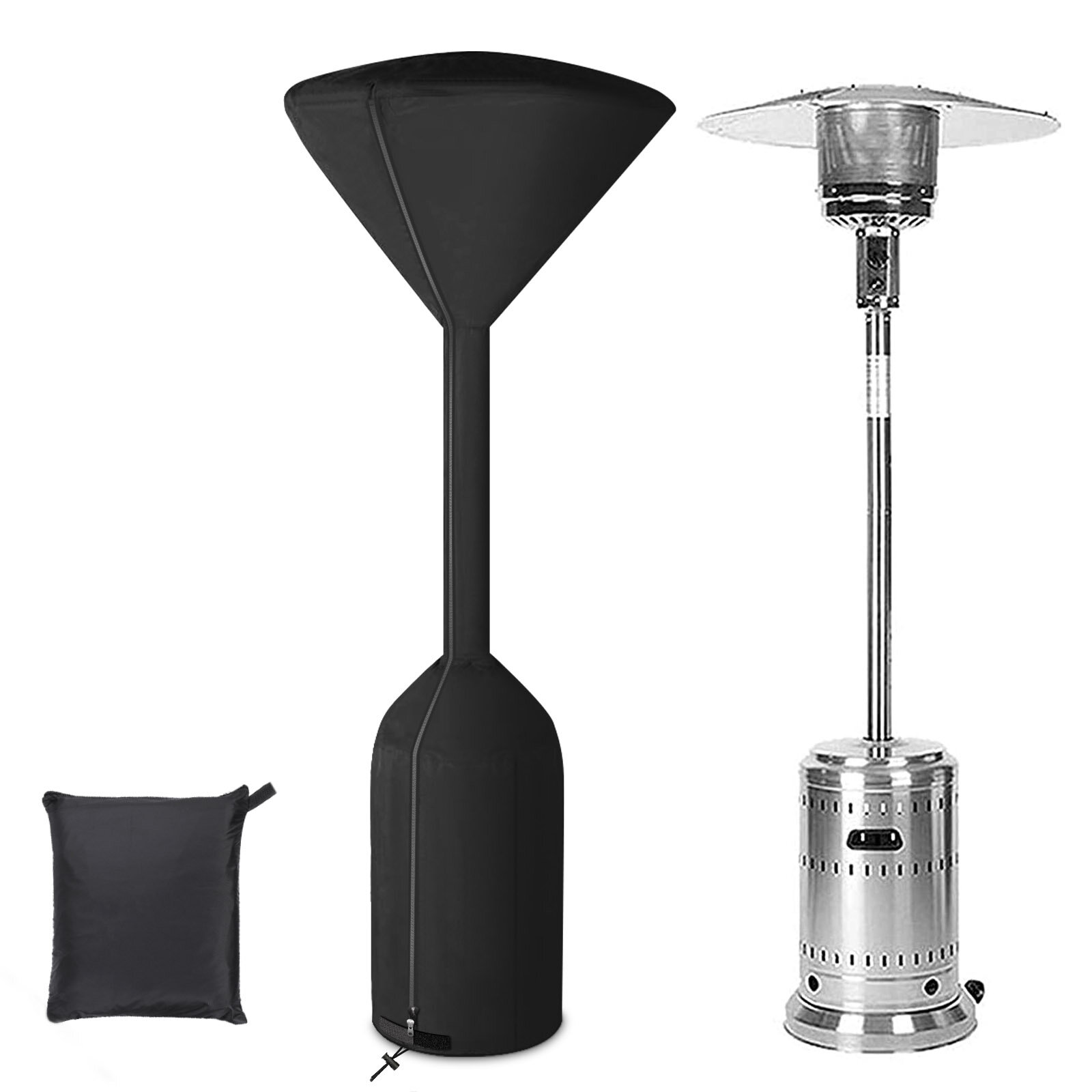 Features:?Upgraded Heavy Duty Material? NASUM Patio heater cover is made of 600D heavy duty Oxford material that is waterproof, premium durable, ripproof and not faded even after a long time using. This Upgraded heater cover offers long-lasting strength and helps keep your investment protected from one season to the next.?Universal Size for Outdoor Heater?Our outer heater cover fits most round-style stand-up patio heaters up to 95 inches high with up to 34-inch-diameter domes and up to 18.5-inch-diameter round bases; ideal for everyday use.Please measure your patio heater before purchasing.?Install Easily & Protect Better?This outdoor heater cover with sturdy zipper for easy install and removal. And the bottom hook and loop fastener can tighten better to prevent being blown away by the wind. It provides secure protection from top to bottom of the outdoor heaters perfectly.?All Weather Resistant? Made of high density Oxford fabric with anti-UV & water-resistant laminated backing for protection against sun, rain, frost, snow, dust and other outdoor element. Your patio heater will be kept in great conditions through all seasons! ?Easy to Clean & Storage? You can wash it with water and dry in the sun, or wipe with a damp cloth. Please do not put it into the washing machine. Heater cover is light and easy to folded and stored in a portable bag.