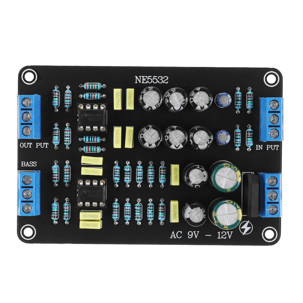 Crossover structure: Linkwitz-RileyBoard structure: stereo four-channel output (left and right channel mid-treble, left and right channel heavy bass)Op amp chip: high precision NE5532Crossover slope: 12dB/Oct 12dB (2nd oroder)Crossover frequency: 160HzChip type: high precision and low noiseCapacitor type: correction capacitorResistor type: high precision metal film resistorOp amp bandwidth: 10MHzOp amp slew rate: 9V/?sPower supply: dual power transformer 12VPower: 10WPackage type: DIP plug-in typeNumber of pins: 8P dual op ampOperating temperature range: room temperature environmentDevice Marking: NE5532Op amp features: internal compensationChip socket: high-quality round hole gold-plated 8P socketDimensions: 93 x 63 x 19mmModule weight: 48±1.5g