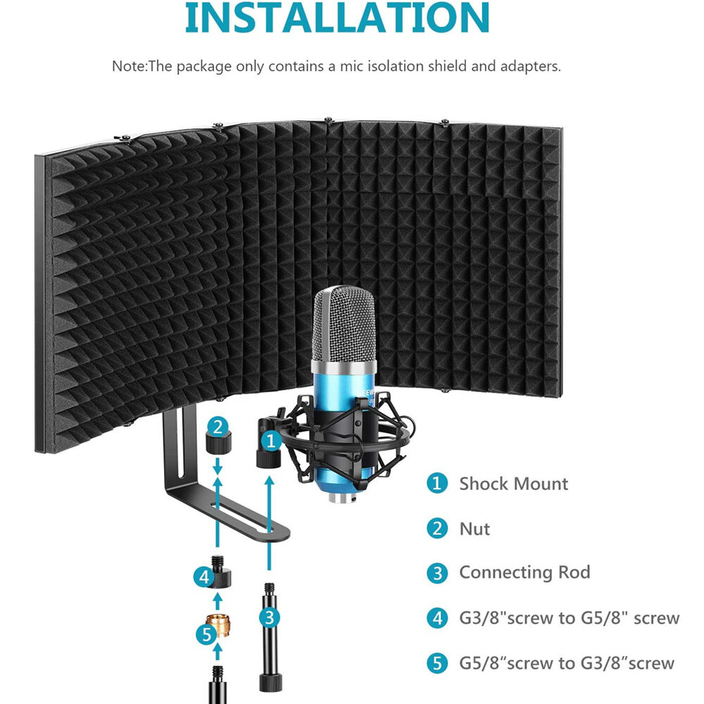 Neewer 5 plaque pliante enregistrement Microphone pare-vent pare-vent insonorisation bouclier – Noir