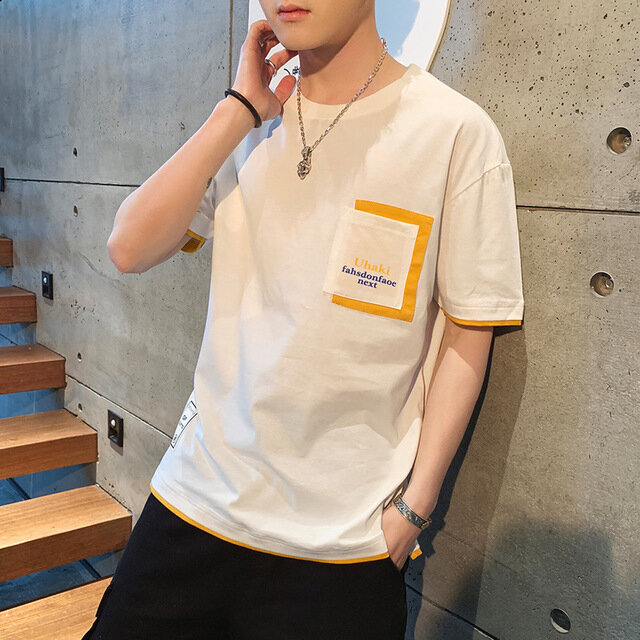 New Trend Slim Casual Color Matching Men’s Short-sleeved T-shirt Bottoming Shirt Cotton T-shirt One Hair – XL Dark Gray
