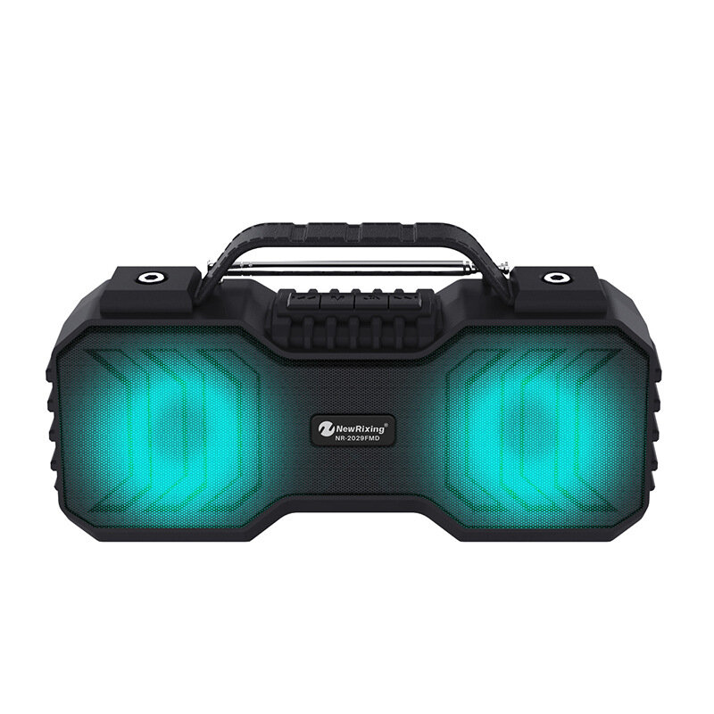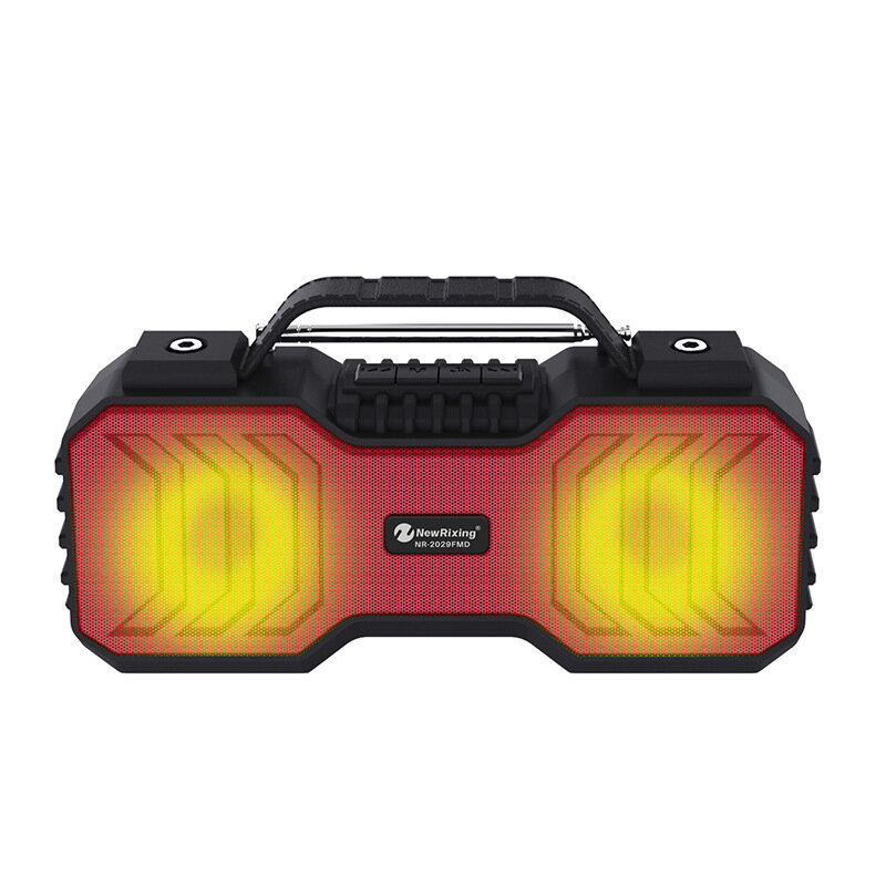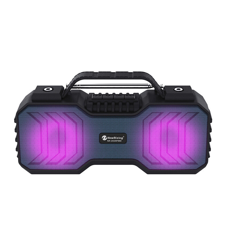 NewRixing NR-2029FMD Haut-parleur Barre de son Bluetooth sans fil Basse Radio FM Carte TF AUX-In Lumiere ambiante etanche Boete de son exterieure portable avec micro – Noir