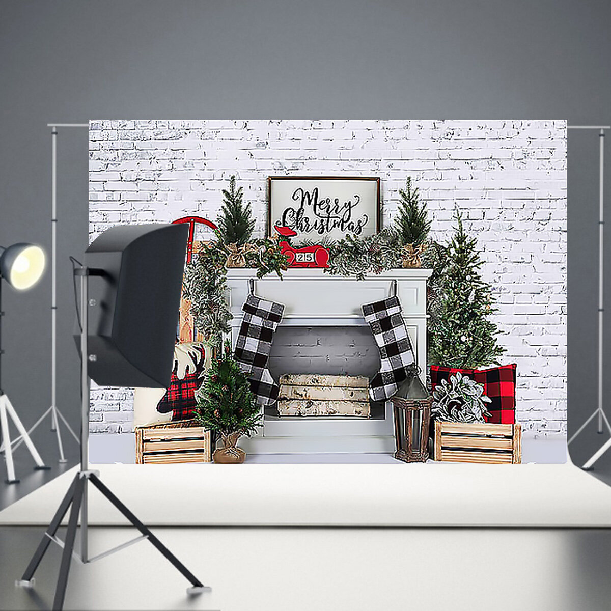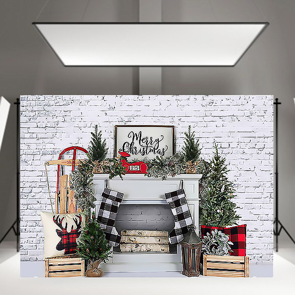 Noel photographie decors blanc brique cheminee fond tissu pour Photo Booth Atudio photographie toile de fond Prop – 2,7 x 1,8 m
