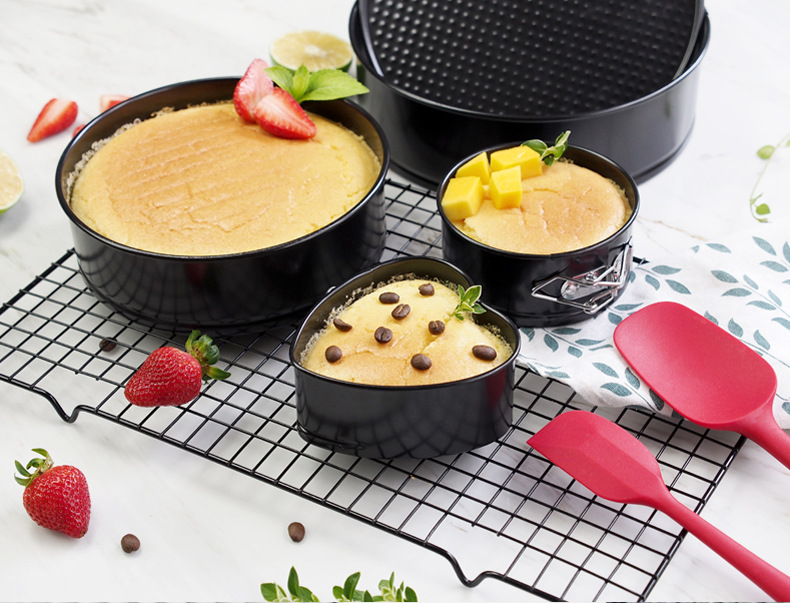Non-stick surface of the pan make it easier to take the cake out without damaging its structure or texture. Made from carbon steel which is nontoxic, odorless and environmental. Coated in long-lasting nonstick for excellent food releases and easy cleanup.