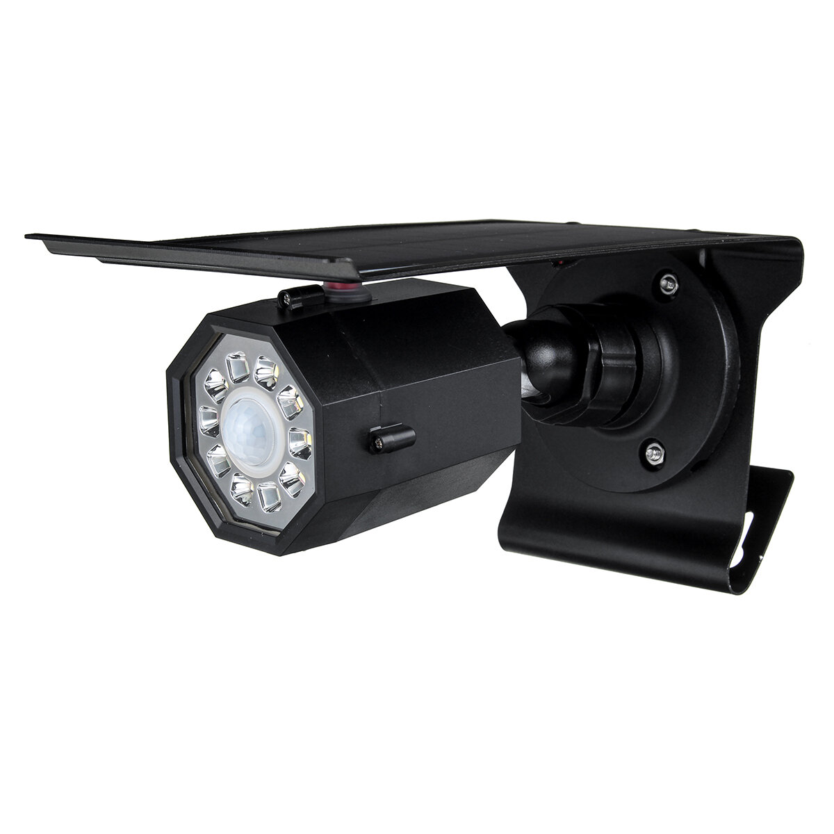 Nouvelle lampe de mur solaire d’appareil-photo de F ake, capteur de mouvement 180 degres rotatif impermeable IP65 mene lumieres menees pour la cour de garage d’allee de garage de jardin de jardin – Blanc