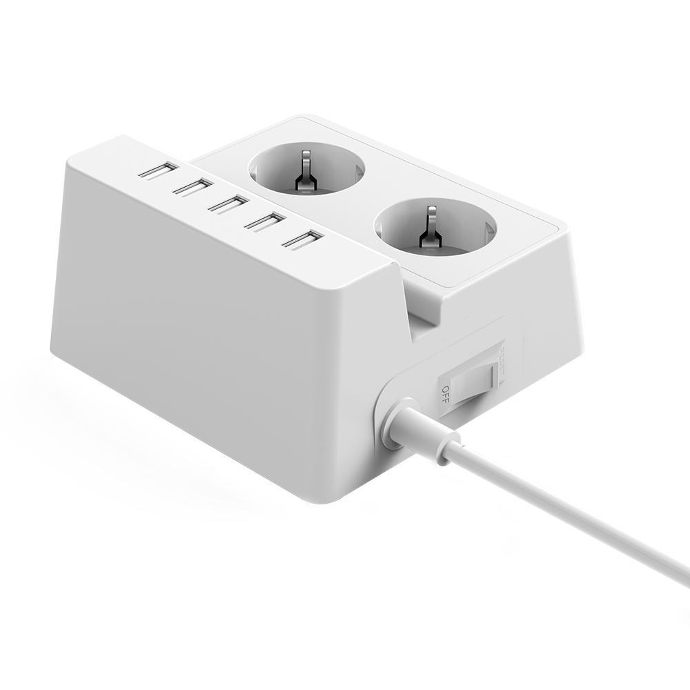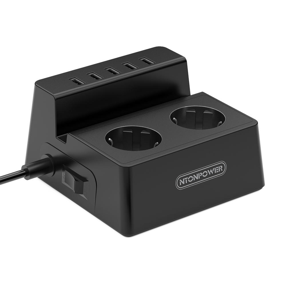 NTONPOWER EU Prise de courant Power prise 2 AC Extension de prises avec 5 USB chargeur Surge Protector 1.5M – white