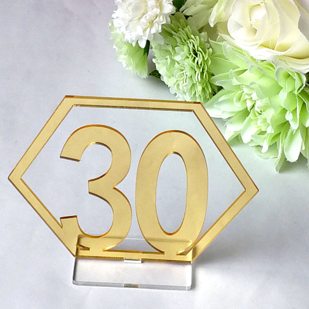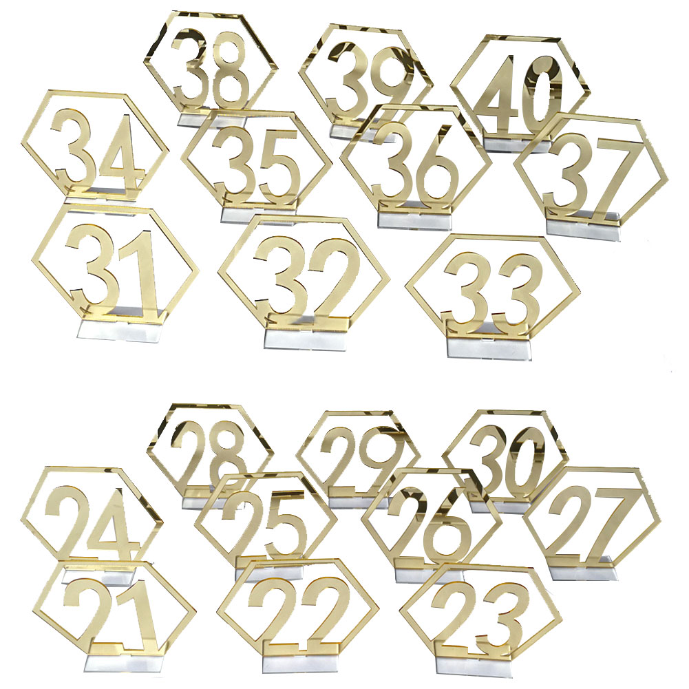 Number 21-40 Acrylic Mirror Surface Hollow-out Hexagon Table Cards Reception Seat Card for Party Wedding Decoration 20PCS/Set Golden