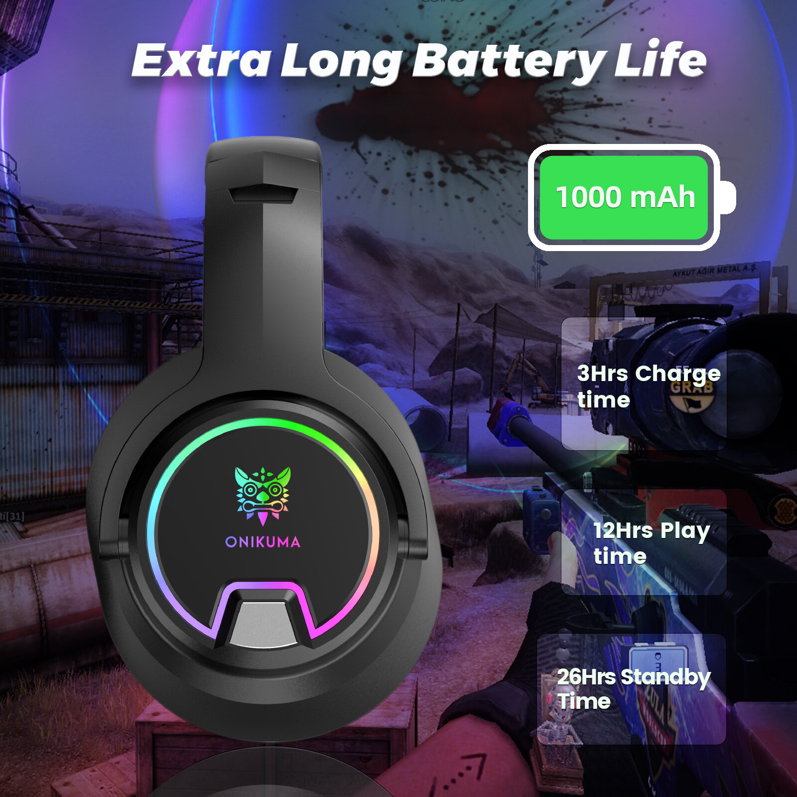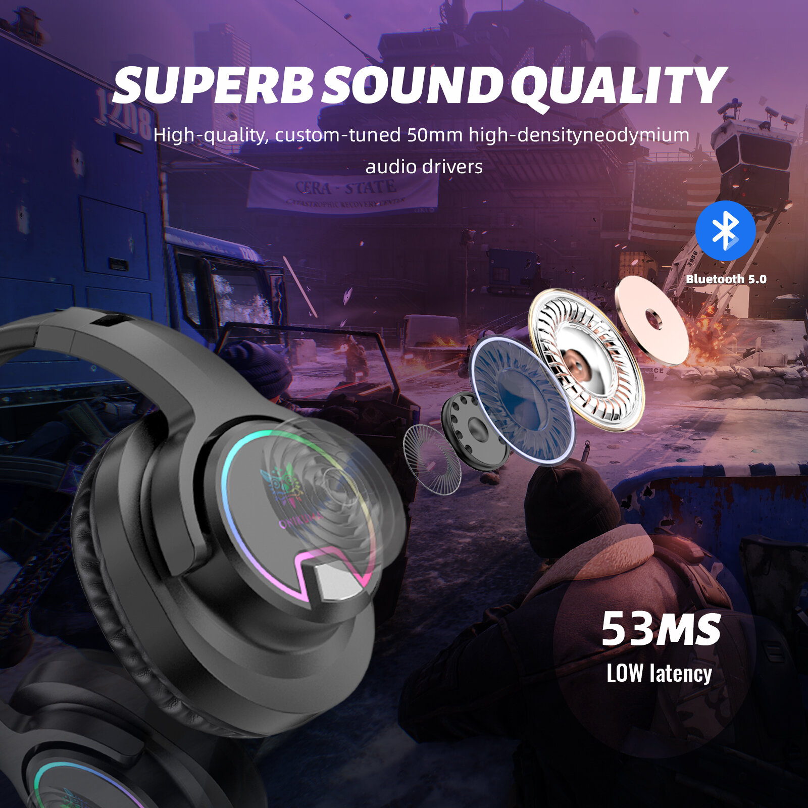 ONIKUMA B130 bluetooth 7.1 canaux RGB casque de jeu 50mm pilote HiFi casque de jeu sans fil – Noir