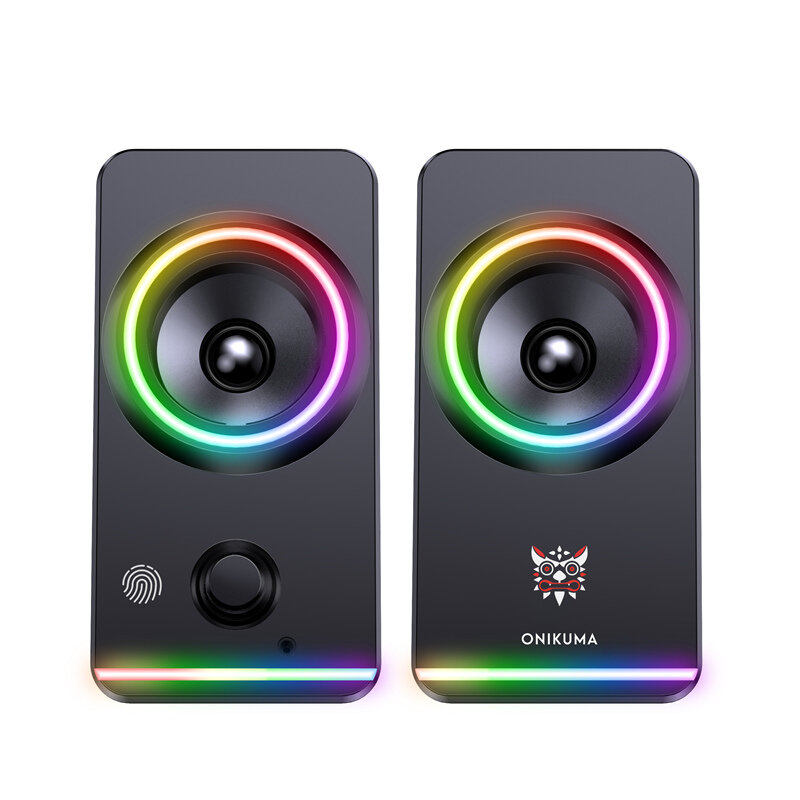 ONIKUMA X6 haut-parleur de jeu 2.0 canaux rvb lumiere ordinateur haut-parleur stereo basse contrele tactile jeu filaire USB/3.5mm haut-parleur – Noir