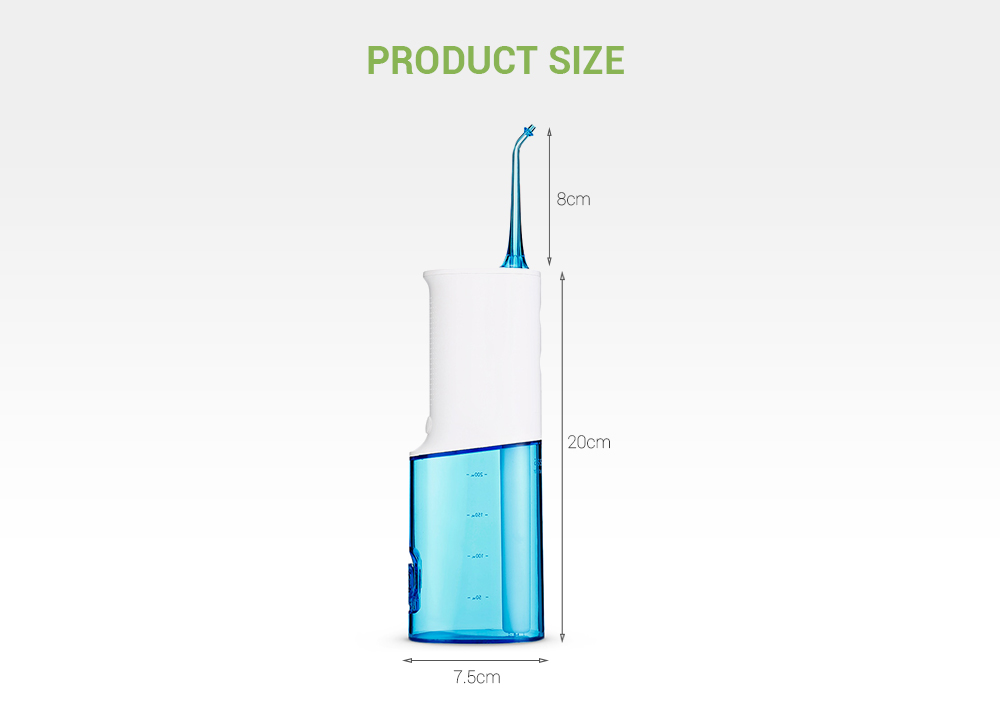 Pas besoin d'ajouter de l'eau à plusieurs reprises pendant l'utilisation, pratique et économie de temps. Fort débit d'eau, 1300 fois par minute, 20 - 140 PSI pression d'eau, vous donnant un nettoyage efficace des dents et aucun dommage aux dents et à la gomme. Charge rapide USB, 2200mAh batterie Li-ion, charge 4 - 6 heures et en utilisant un mois.