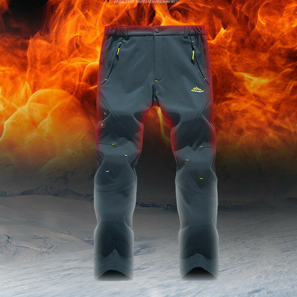 Outdoor Mountaineering Pants Thick Fleece Warm Pants Mens Breathable Quick Drying Soft Shell Trouser – 2XL Black