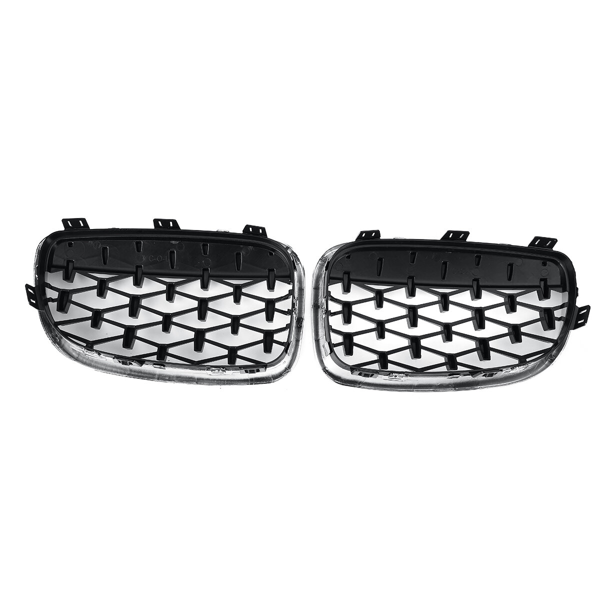Pair Chrome Front Kidney Grilles Diamond Style For BMW 1 Series E81 E82 E87 E88 2007-2013